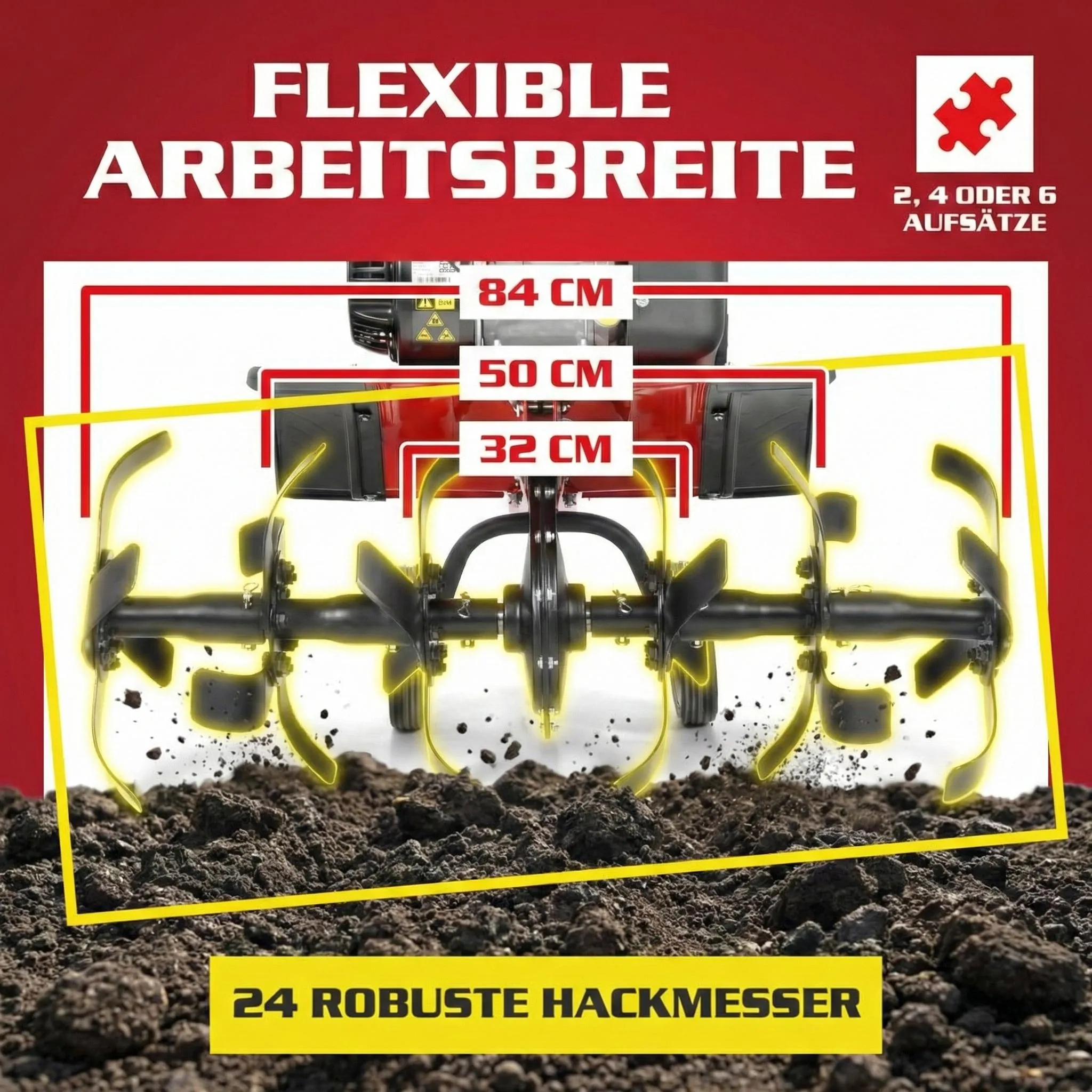 - Insgesamt 24 rotierende Messer für effektives Umgraben