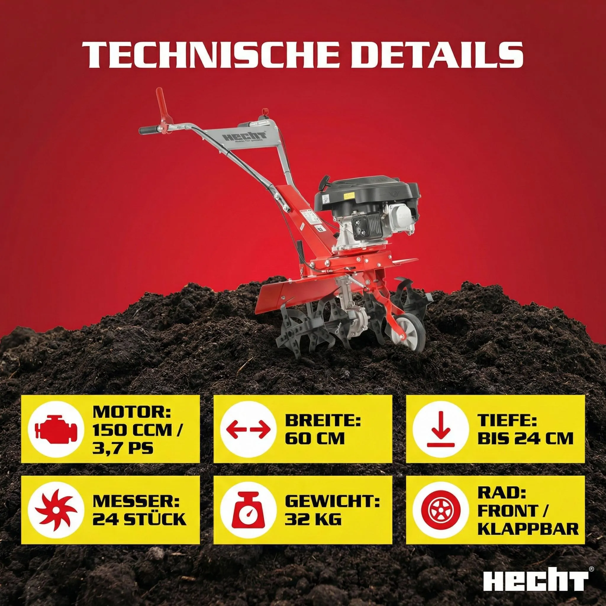 Die HECHT 746 Benzin-Gartenhacke bietet eine kraftvolle und effiziente Möglichkeit zur Bodenbearbeitung. Ihr durchdachtes Design und die robuste Konstruktion machen sie zu einem zuverlässigen Helfer im Garten.
