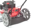 Zusätzlich lässt sich das Vorderrad je nach Bedarf feststellen oder schwenken. Dabei treibt der leistungsstarke 196ccm Motor sowohl die Schneidmesser als auch den Radantrieb über die großen Hinterräder an.