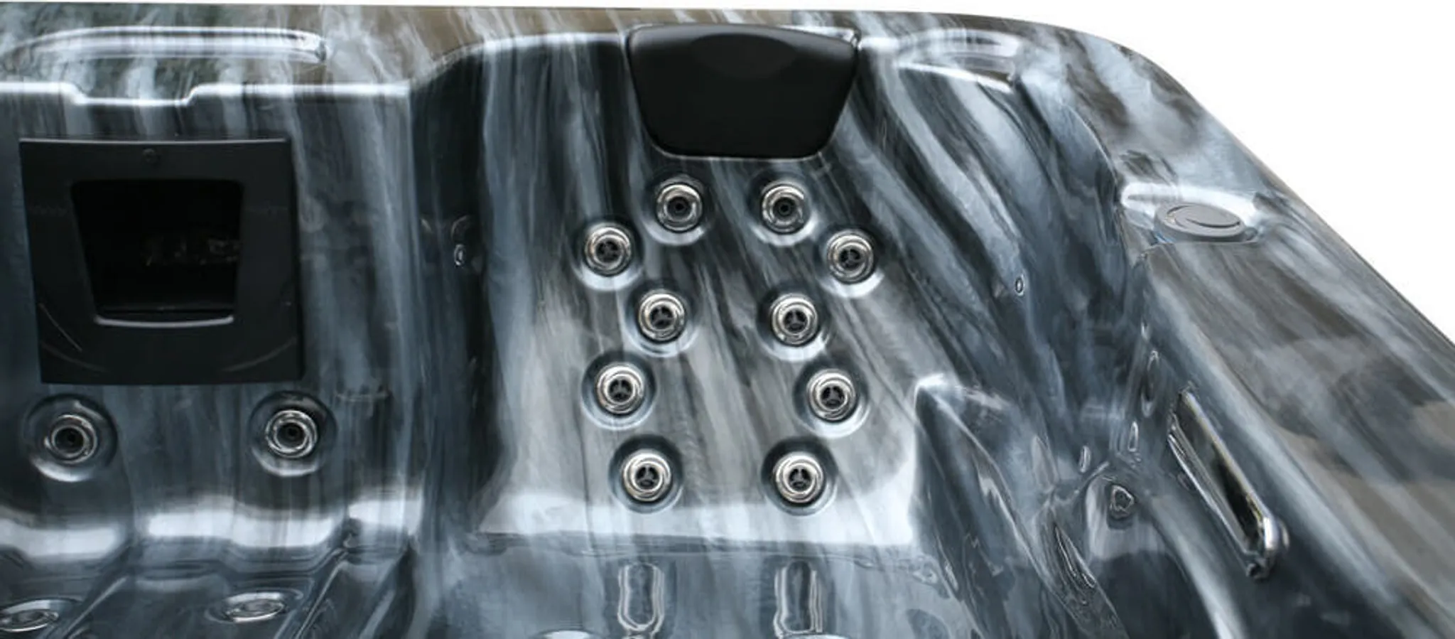 * Inklusive Heizung, Lichttherapie & mehr – komplette AusstattungWellness für Zuhause – stilvoll, hochwertig und unkompliziert. Der BLACK MARBLE Whirlpool bringt Entspannung genau dorthin, wo Sie sie brauchen – ob im Garten, auf der Terrasse oder im Wintergarten. Mit 27 kraftvollen, individuell einstellbaren Massagedüsen genießen Sie eine intensive und ganz persönliche Massage, die Verspannungen löst und für Wohlbefinden sorgt. Die edle schwarze Marmoroptik der Wanne und die wetterfeste, pflegeleichte WPC-Verkleidung in Schwarz machen den Whirlpool zum optischen Highlight in jedem Außenbereich.