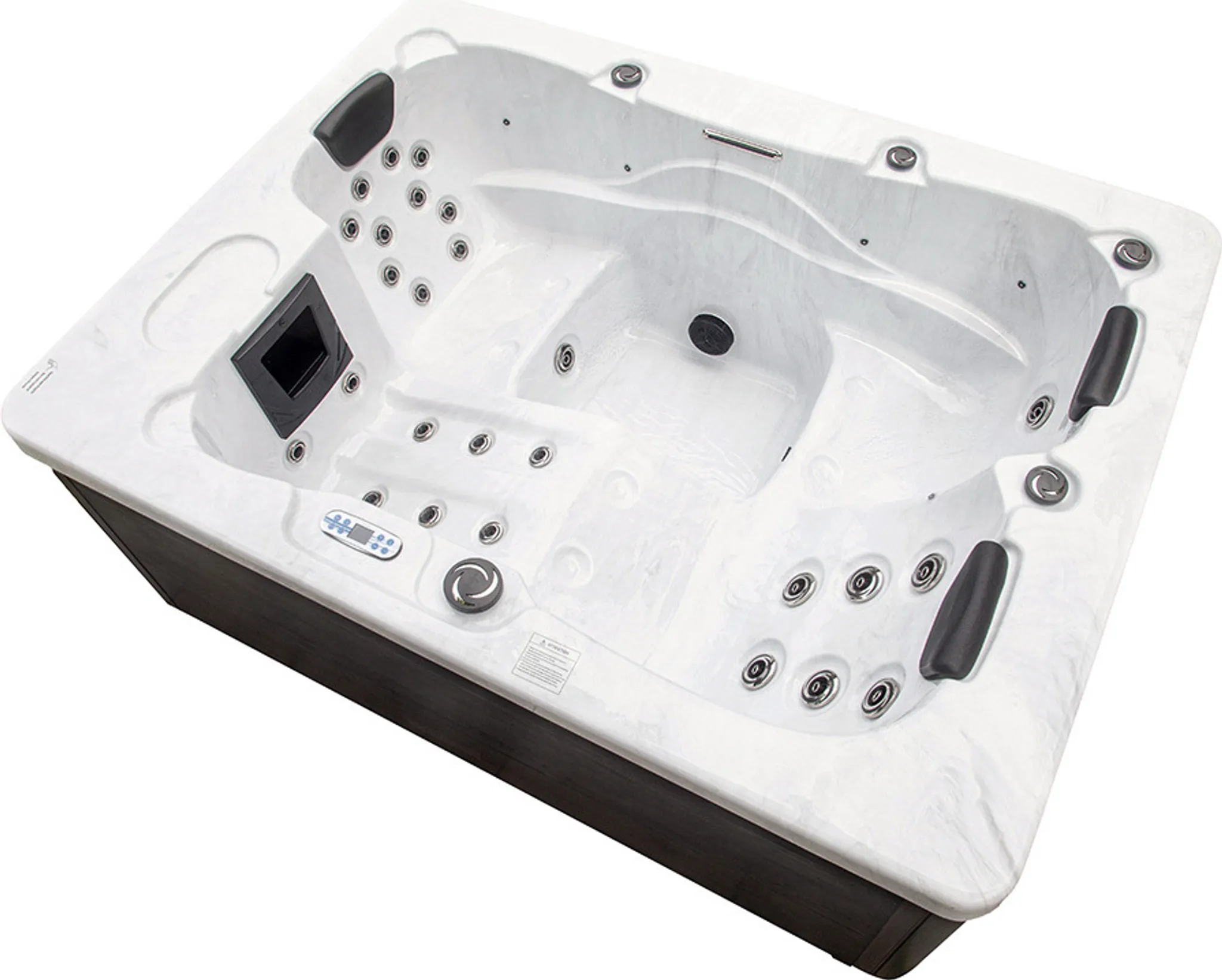 HOME DELUXE – Outdoor Whirlpool – WHITE MARBLE PURE – Maße: 210 x 160 x 85 cm – Inkl. Heizung, 27 Massagedüsen und 9 Lichtquellen I Außen Whirlpool Spa für 3 Personen