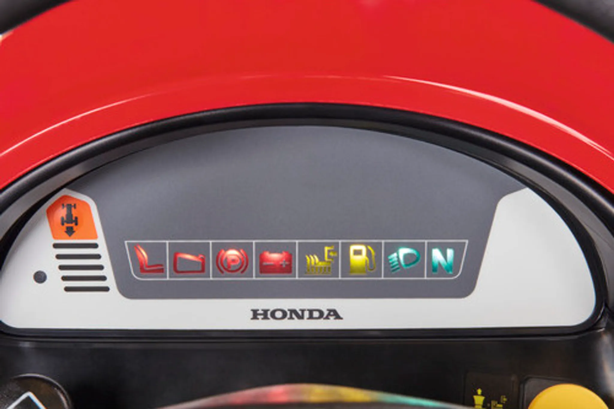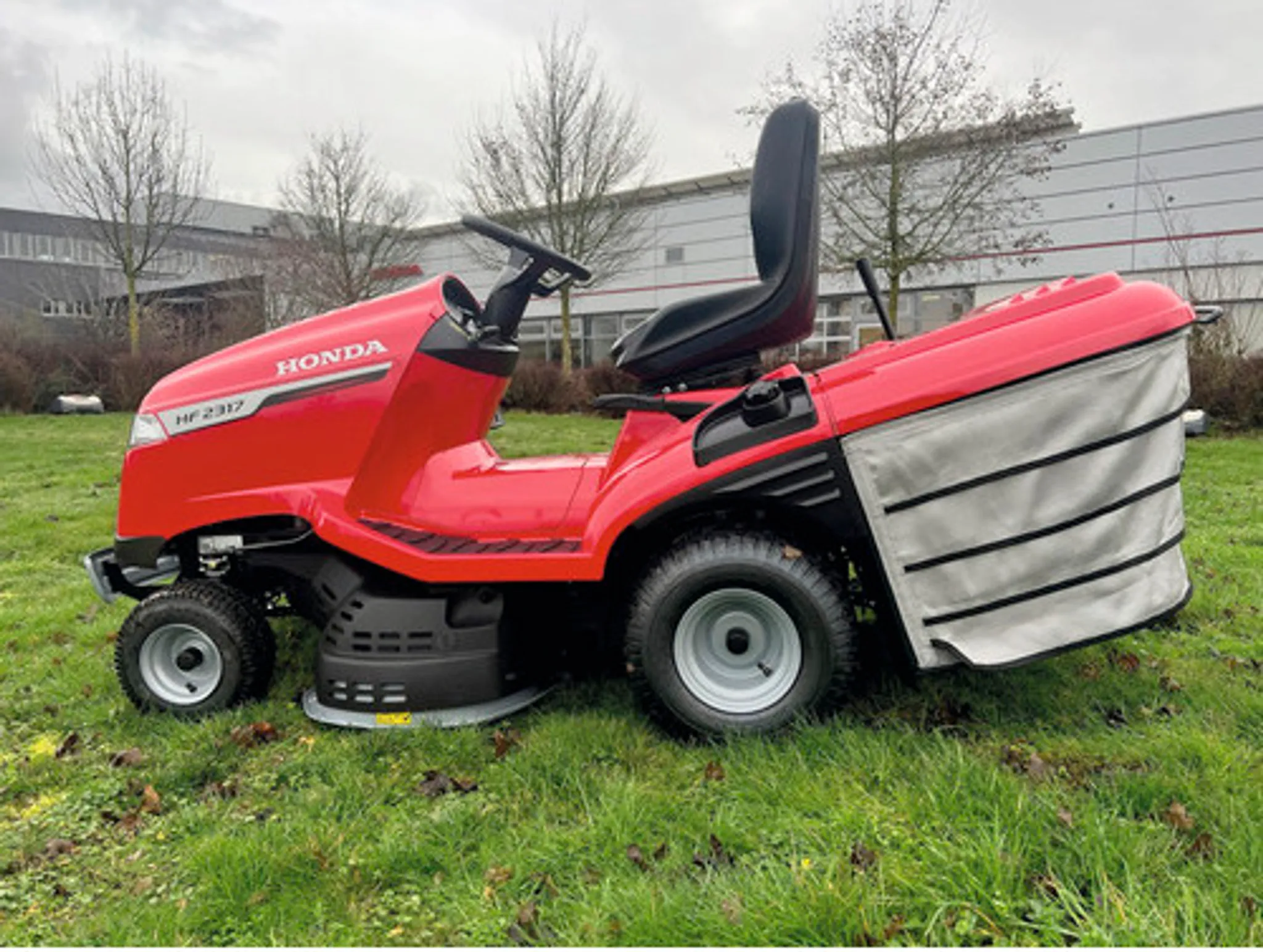 Große Rasenflächen hältst Du mit einem Rasentraktor top in Schuss. Du nimmst Platz, startest die Zündung und legst los. Mit dem Rasentraktor HF 2317 kürzt Du selbst hohes Gras im Nu. Neben der Zeitersparnis bietet er Dir noch weitere Vorteile. Produktmerkmale des Rasentraktors HF 2317 HM von HONDA Darum solltest Du zugreifen: Mit dem kompakten Rasentraktor HF 2317 HM kommst Du mühelos zu einem gepflegten Rasen. Seine Stärken spielt der Mäher auf großen Flächen über 2.000 m² aus. Erspare Dir den schweißtreibenden Fußmarsch und nimm auf dem ergonomischen Sitz Platz. Klappbare Armlehnen und ein leichtgängiges Soft-Grip-Lenkrad erhöhen den Bedienkomfort. Auf dem übersichtlichen LCD hast Du Drehzahl, Batteriespannung und Laufzeit jederzeit im Blick. Du musst also nicht befürchten, dass Dein Benzintraktor plötzlich stehen bleibt. Er warnt Dich vor einem niedrigen Öl- und Kraftstoffstand. Der robuste 2-Zylinder-V-Motor mit 9,7 kW bringt Dich effizient selbst über unwegsames Gelände. Ein Tritt aufs Pedal und der Hydrostat-Antrieb regelt die Geschwindigkeit: stufenlos, ruckelfrei und präzise. Dabei sorgen die schonenden Profilreifen für eine gute Traktion, ohne Spuren zu hinterlassen. Dank 7-facher Höhenverstellung ist auch hohes Gras kein Hindernis. Synchrone Messer mähen das Gras präzise ab, sogar beim Wenden. Auch die Fangleistung kann sich sehen lassen. Mittels Optiflow-Lüfterradsystem landet das Gras staubfrei im 280 l großen Fangkorb. Er sorgt dafür, dass Du große Flächen ohne viele Pausen mähst. Doch aus dem Rasentraktor HF 2317 HM holst Du noch mehr heraus. HONDA bietet Dir das passende Sonderzubehör. Wie wäre es mit dem Deckel- und Schneidwerkzeug für Mulching? Dadurch wirfst Du das fein zerhackte Gras zurück auf die Wiese, um sie in einem Arbeitsschritt zu düngen. Am optionalen Zug-Kit koppelst Du einen Anhänger an. Damit pflegst Du Deine Wiese und transportierst in einem Rutsch Deinen Holzschnitt ab. So bequem geht Gartenarbeit heute. Mit dem robusten und leistungsstarken Rasentraktor HF 2317 HM von HONDA macht Rasenpflege richtig Spaß. Der leicht zu bedienende Mäher sorgt mit großer Fangleistung effizient für einen präzisen Schnitt. Mäharbeiten erledigst Du in kurzer Zeit ganz komfortabel, selbst bei hohem Graswuchs und auf großen Flächen. Festgenagelt: Mit dem Rasentraktor HF 2317 HM macht das Mähen anspruchsvoller Rasenflächen sogar Spaß.