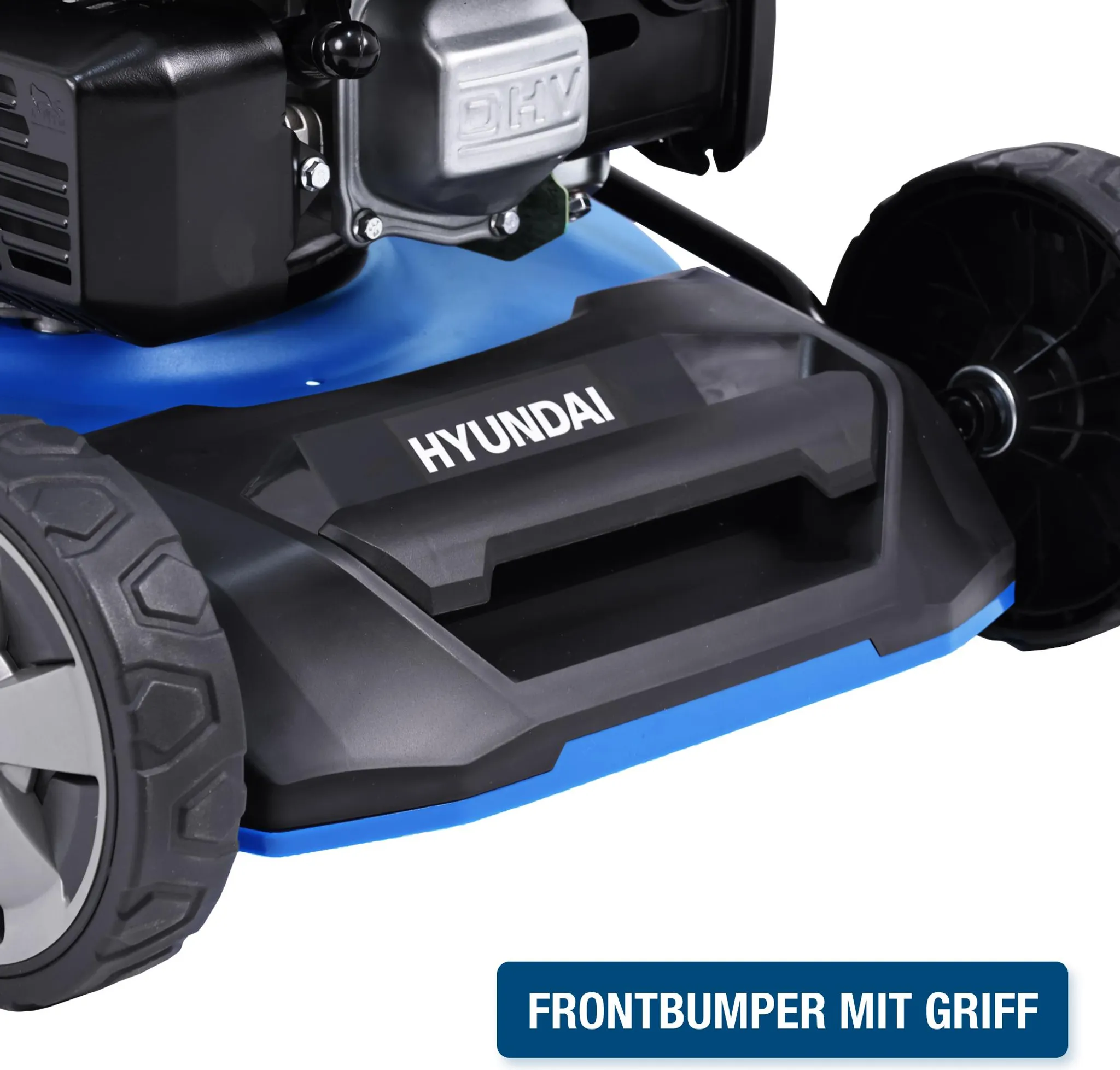 Der sparsame 4-Takt-HYUNDAI-Motor bietet leise und zuverlässige Leistung. Der 65 L Fangkorb mit Füllstandsanzeige zeigt genau an, wann er geleert werden muss. Die Schnitthöhe ist zentral einstellbar von 25 bis 75 mm. Der ergonomische Führungsholm mit Soft-Grip-Griff ist zusammenklappbar für eine platzsparende Aufbewahrung.