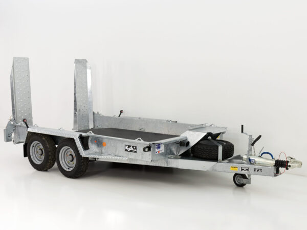 Der „Ifor Williams Baumaschinenanhänger GH1054 163×305 3,5t“ mit Auffahrrampe aus Stahl ist ideal für den Transport von Baumaschinen und anderen schweren Lasten. Mit einer Nutzlast von 2852 kg und einem zulässigen Gesamtgewicht von 3500 kg bietet dieser Anhänger hervorragende Transportmöglichkeiten.