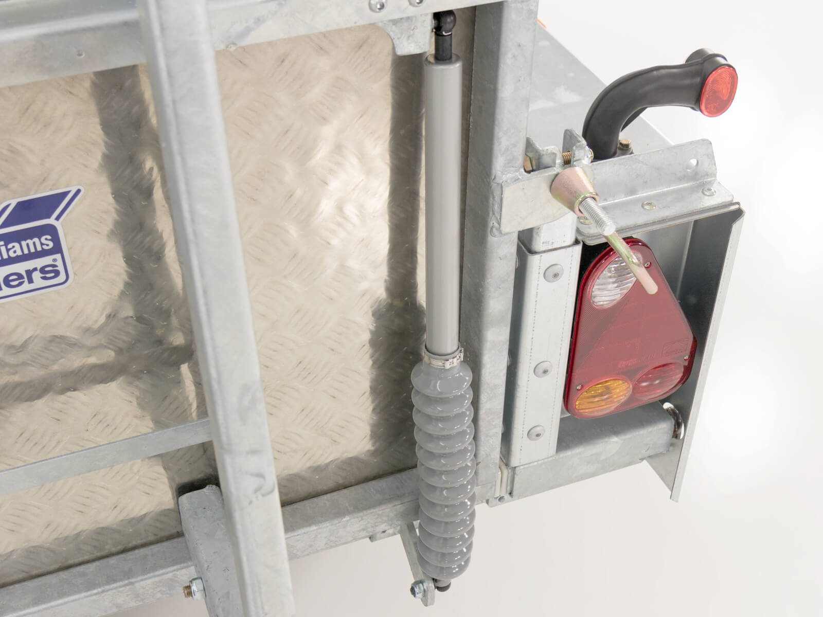 - Fahrwerk: Blattfedern, V-Deichsel mit Zugkugelkupplung, Schwerlaststützrad