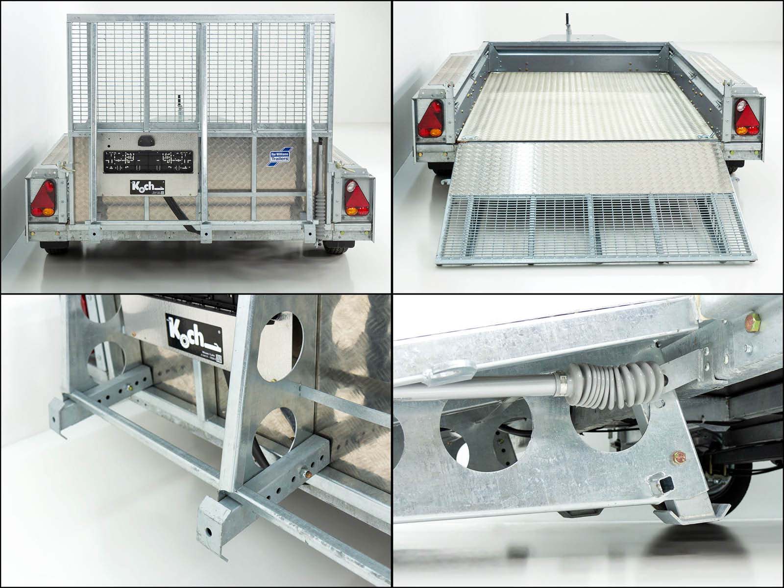 Der Ifor Williams Baumaschinenanhänger GX125 bietet hohe Belastbarkeit und vielseitige Einsatzmöglichkeiten. Mit einem robusten Stahlrahmen, verzinkten Stahlbordwänden und einem begehbaren Aluriffelblech auf den Seitenteilen eignet er sich ideal für den Transport von Baumaschinen. Der Anhänger verfügt über eine 1200 mm hohe Auffahrrampe, eine Baggerlöffelablage und mehrere Verzurrösen für eine sichere Ladung.
