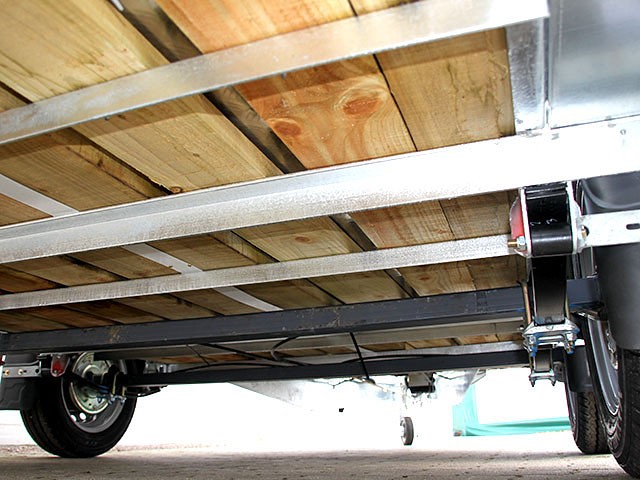 • Druckbehandelte Holzbohlen mit rutschfestem Alu-Riffelblechbelag