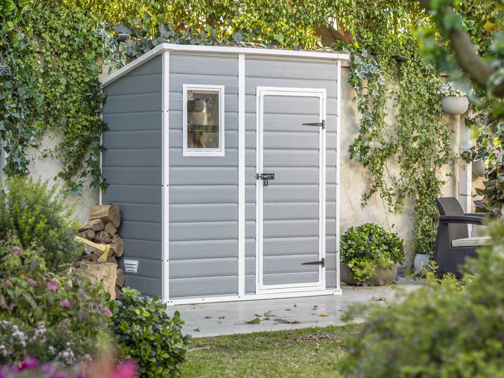 Keter Manor Pent grau – Gartenhaus – mit Seitenfenster – 183.5x111x200.5 cm