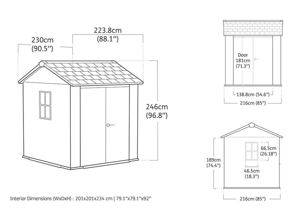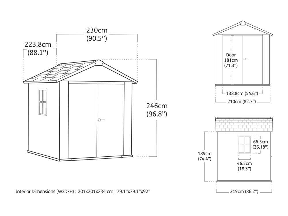Keter Signature Walnut 757/775 – Gerätehaus – Mit Fenstern – 230 x 223 x 246 cm
