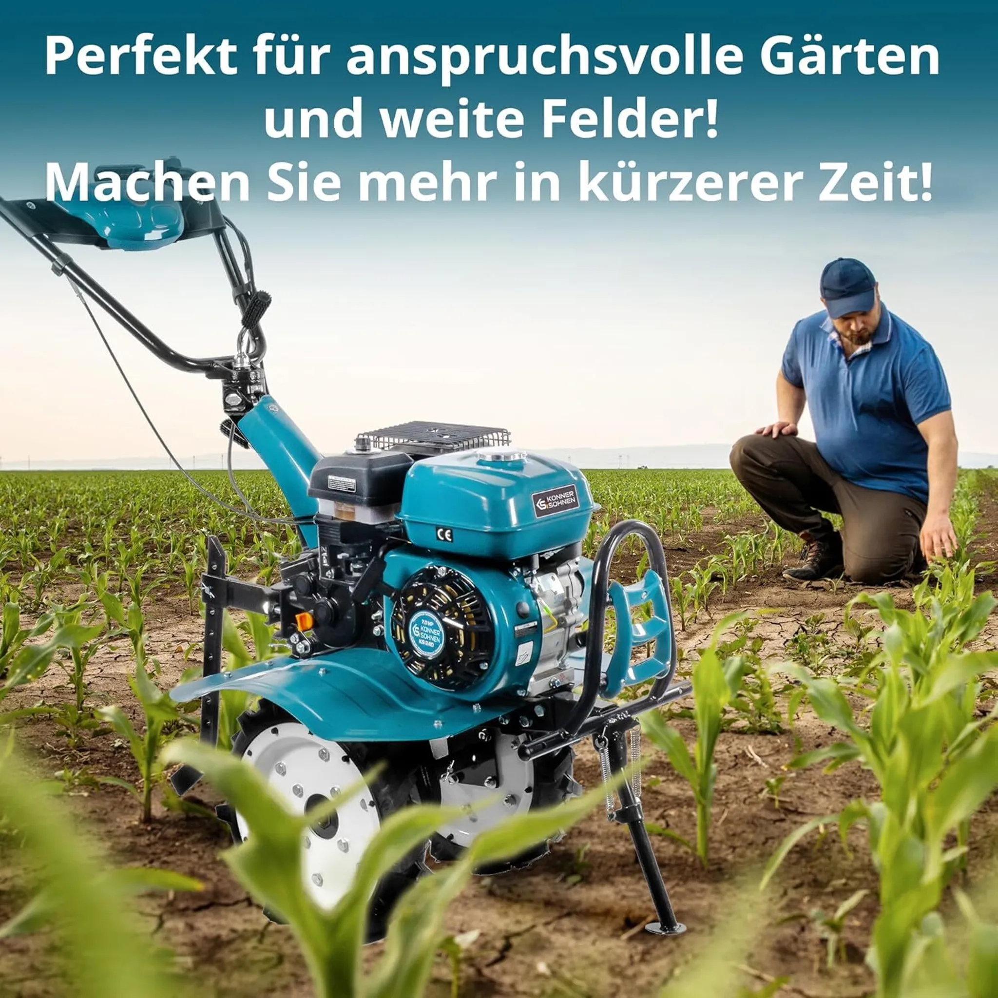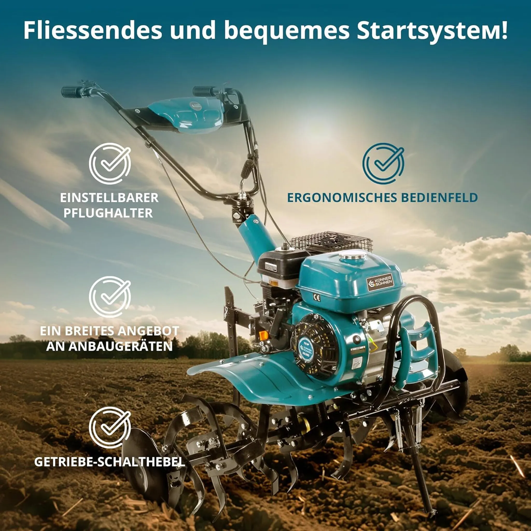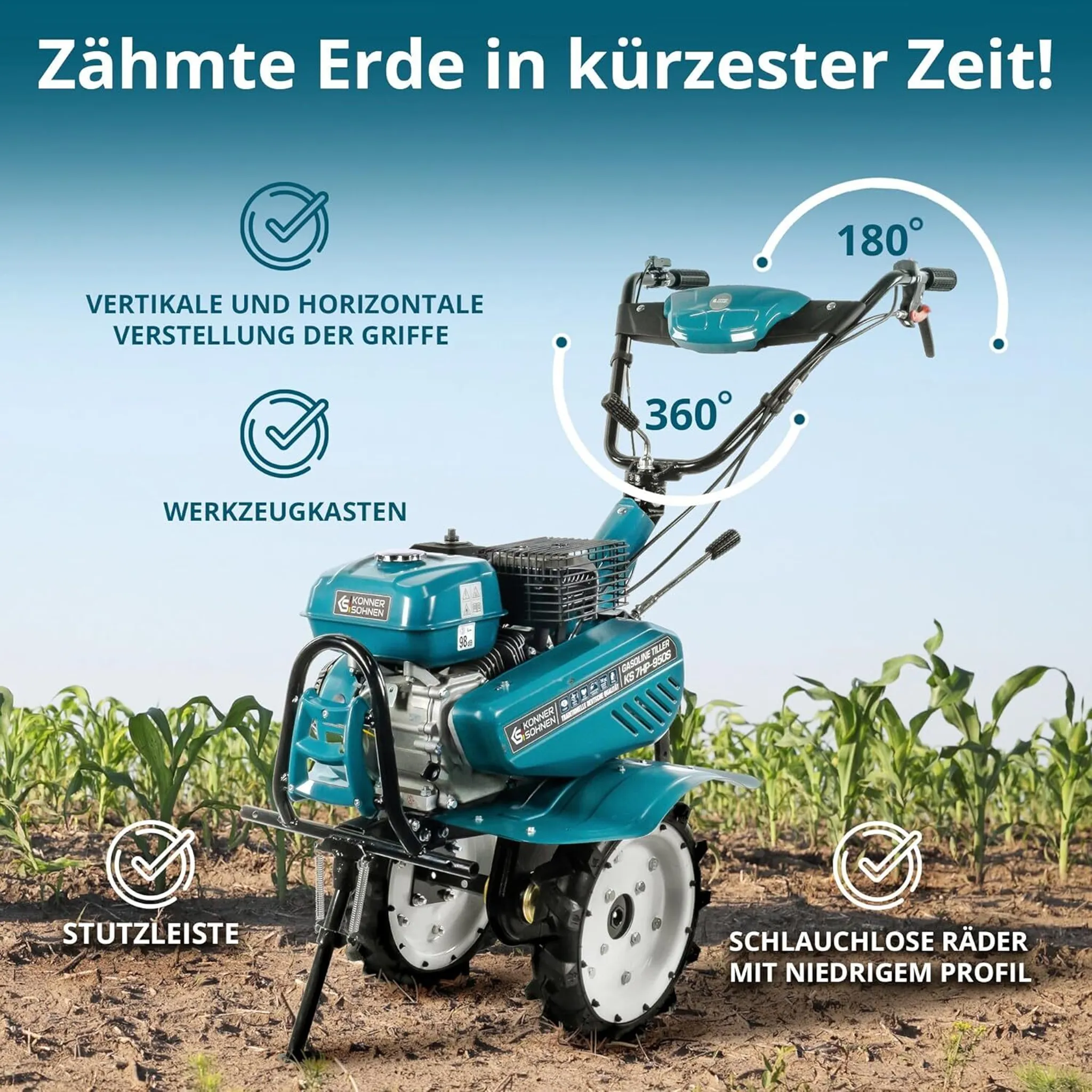 Der Benzinkultivator KS 7HP-950S der Marke Könner & Söhnen ist ein leistungsstarkes, zuverlässiges und vielseitiges landwirtschaftliches Gerät. Er wurde speziell für die Bearbeitung von Böden unterschiedlicher Dichte entwickelt – sei es für die Kulturbepflanzung, Ernte oder das Häufeln.