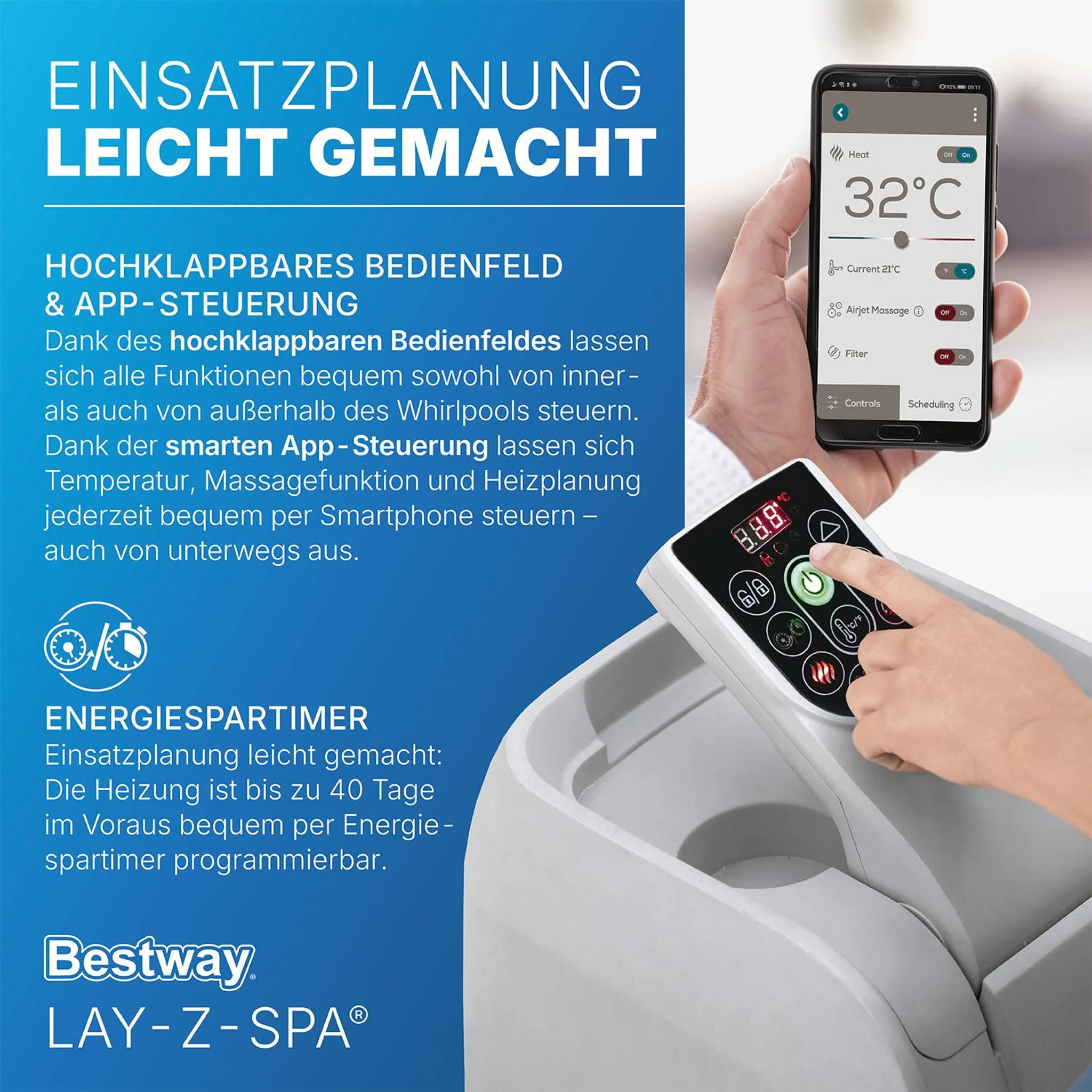 Erlebe puren Komfort mit dem Bestway® LAY-Z-SPA® WLAN-Whirlpool Milan AirJet Plus™!