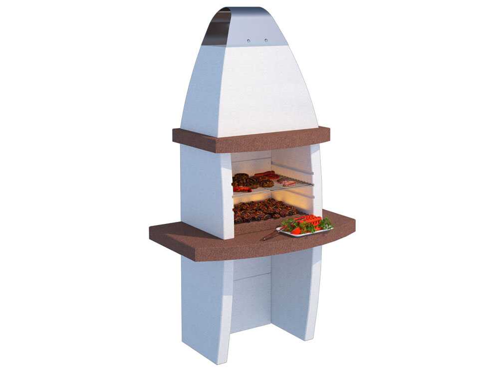Der Grill besteht aus einer speziellen durchgefärbten Marmorgranulat während der Schornstein aus rostfreiem Stahl gefertigt ist. Diese Materialien garantieren eine starke, sehr stabile und dauerhafte Struktur, die allen Witterungsbedingungen standhält.