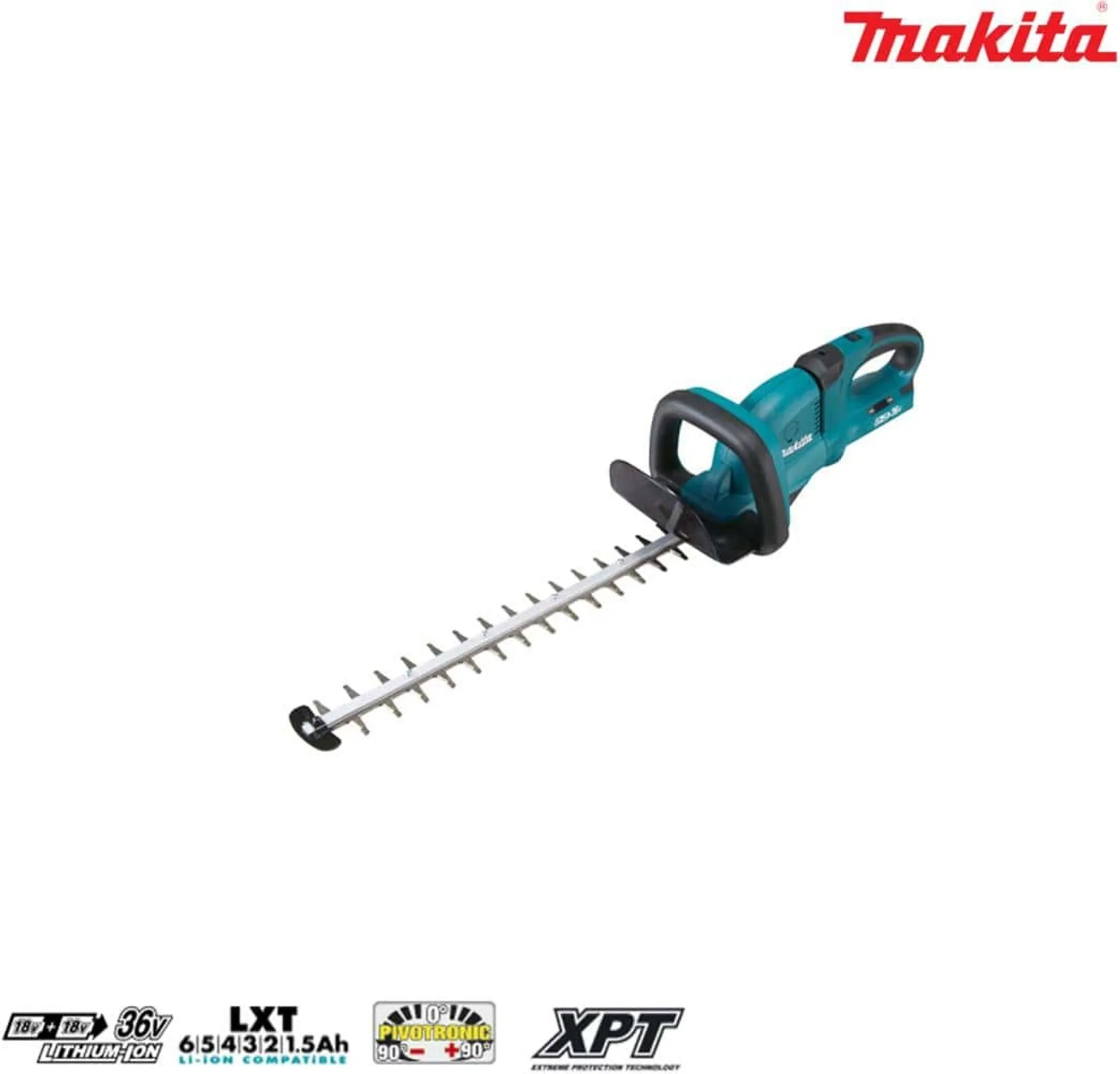 Die Makita DUH 551 Z ist das perfekte Gerät um den Hecken den Kampf anzusagen, die Freiheit des Akku betriebenen Gerätes ermöglicht Ihnen ein geradezu leichtes Arbeiten, da Sie vollkommen uneingeschränkt Wirken können und schon fast Spaß dabei empfinden werden sich an der Hecke völlig frei bewegen zu können. Die Makita DUH 551 Z verfügt über einen ergonomisch drehbaren Griff, einen Anstoßschutz, Sanftanlauf, Drehzahlregelung, eine elektronische Motorbremse und einer Überlastelektronik. Das rostfreie Messer ist mit dreiseitig geschärften Ecken versehen und das auf einer Länge von 55 cm, mit einer Schnittstärke von bis zu 18 mm, bei einem Messerabstand von 27 mm. Zu keiner Zeit werden Sie den Kauf dieses hochwertigen Gerätes bereuen, sich eher wünschen, die Hecken mögen schneller nachwachsen. Die Krönung ist dann noch das XPT System ( Extreme Protection Technology ), welche das Gerät vor Schmutz- und Spritzwasser schützt. Mit 36 Volt Spannung bietet das Gerät viel Kraft auch für schwierige Aufgaben.