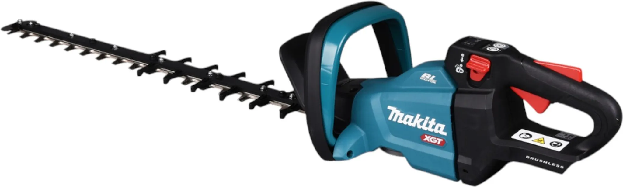 Makita UH006GZ Akku Heckenschere 40Vmax XGT Kompakter Akku-Heckenschere mit hoher Kraft und Ausdauer für anspruchsvolle Arbeiten XGT Akku-Heckenschere mit Wet Guard. Dieser macht ihn wasserfest und somit ideal für anspruchsvolle Arbeiten, selbst bei Regen. Die Rücklauffunktion befreit die Klinge von eingeklemmten Ästen. Eignet sich hervorragend zum Schneiden dicker Äste.Hierzu verwenden Sie das im Handbuch angegeben Fett (199450-5 bzw. gleichwertiges) oder das MAKITA original Fett mit der Teilenummer 197439-7. Bei diesem Modell ist nach 50 Betriebsstunden eine Schmierung empfohlen. Eigenschaften Zuverlässige Schnittleistung vergleichbar mit Benzin-/Wechselstrom-Heckenscheren Optimale Klingenform für sanftes Schneiden und lange Laufzeit WetGuard – Ausgezeichnete Wasserfestigkeit Die Konstantgeschwindigkeitsregelung sorgt für eine konstante Geschwindigkeit unter Last Rückwärtslauf befreit das Messer, wenn es von dicken Ästen blockiert wird Die Akku-Schutzschaltung schützt vor Überlastung, Tiefentladung und Überhitzung Technische Daten Akku-Serie: XGT Akkuspannung 40 V Akkutyp Li-ion Leerlaufhubzahl 2000 / 3000 / 4000 min?¹ Max. Schnittleistung 25 mm Produktgewicht 3,7 kg Maschinengewicht inkl. Akku (EPTA) 4,4 – 5,6 kg Produktabmessung (L x B x H) 1123 x 223 x 191 mm Schnittlänge 600 mm Bürstenloser Motor Schallleistungspegel (dB) 92 dB(A) Schalldruckpegel (dB) 81 dB(A) K-Wert Geräusch 3 dB(A) Vibration 3 m/s² K-Wert Vibration 1,5 m/s² Mitgeliefertes Zubehör 412911-1 Messerschutz