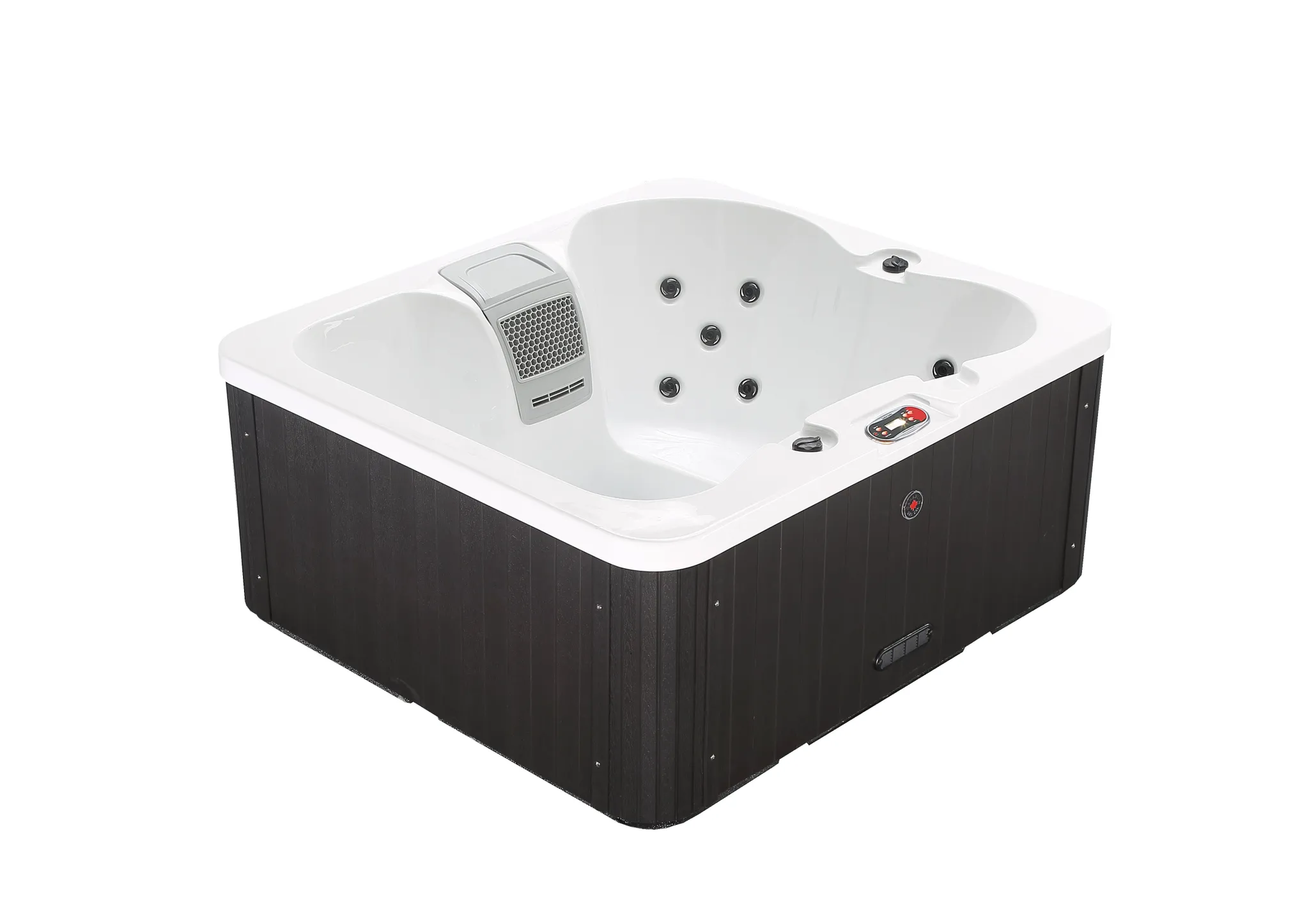 Der Canadian Spa Manitoba Plug & Play Whirlpool passt an fast jeden Ort. Dieser geräumige, aber kompakte Whirlpool ist ausgestattet mit Funktionen eines normalgroßen Whirlpools und bietet problemlos Platz für 4 Erwachsene. Er verfügt über 14 verstellbare Edelstahl-Hydrotherapiedüsen; er ist energieeffizient und einfach zu installieren – einfach an eine Steckdose anschließen. Die mehrfarbige LED-Beleuchtung bietet Ihnen die perfekte Möglichkeit, sich nach einem langen Tag wirklich zu entspannen.
