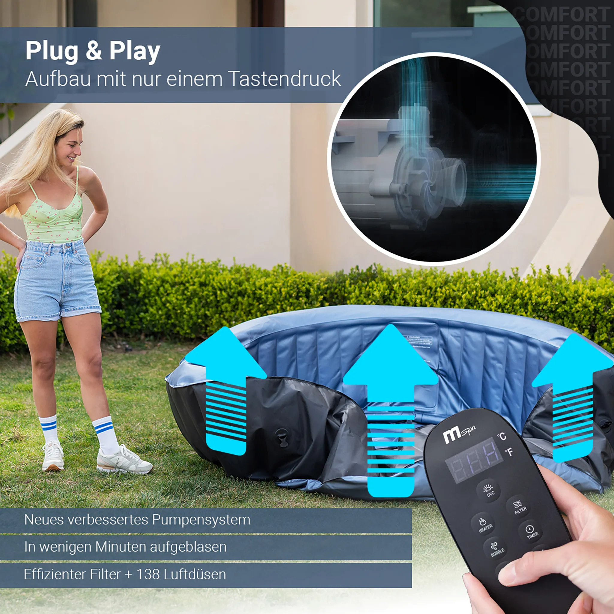 MSpa Whirlpool Comfort Bergen | 6 Personen Pool – In- & Outdoor Spa – 138 Massagedüsen – Fernbedienung – Aufblasfunktion per Tastendruck – 204×204 cm