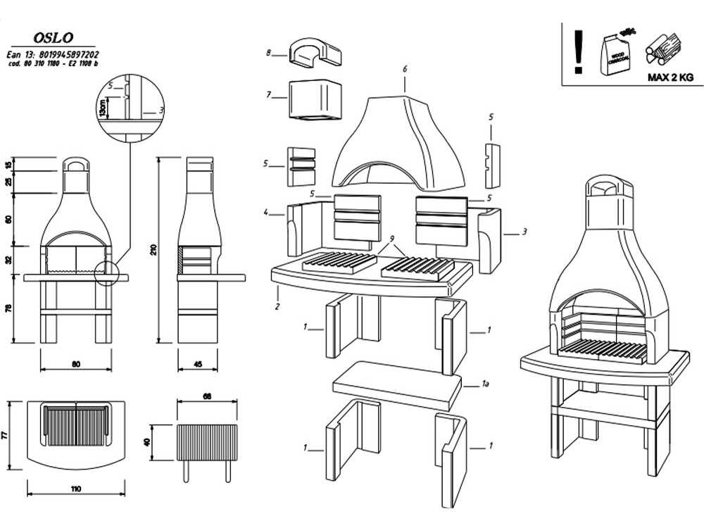 Die Haube und der Sockel müssen mit einer ca. 3-4 mm dicken Schicht aus Wasserschutzfarbe für den Außenbereich und die Abstellfläche mit einer transparenten Wasserschutzimprägnierung (nicht im Lieferumfang enthalten) geschützt werden. Der Grill wird demontiert geliefert und erfordert Mörtel/Kleber für den Zusammenbau. Diese können unter Zubehöre erworben werden.