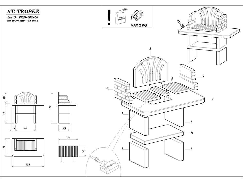 Der Grill wird demontiert geliefert und erfordert Mörtel/Kleber für den Zusammenbau. Diese können als Zubehöre erworben werden.