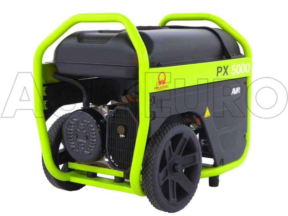 Pramac PX 5000 – Benzin-Stromerzeuger mit Rädern und AVR-Regelung und Elektrostarter – Dauerleistung 3.8 kW – 230V
