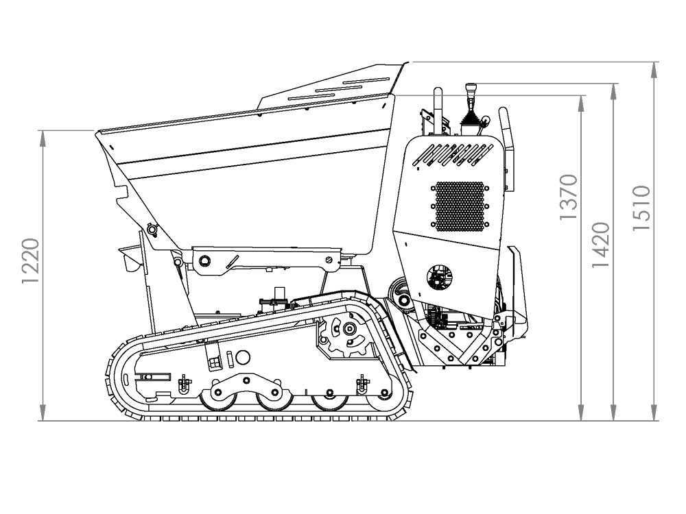 Das hydraulische Kippsystem macht das Kippen der Mulde mühelos und praktisch. Dank der Raupen und des leistungsstarken Motors HONDA kann dieser Raupentransporter folgende Lasten tragen: