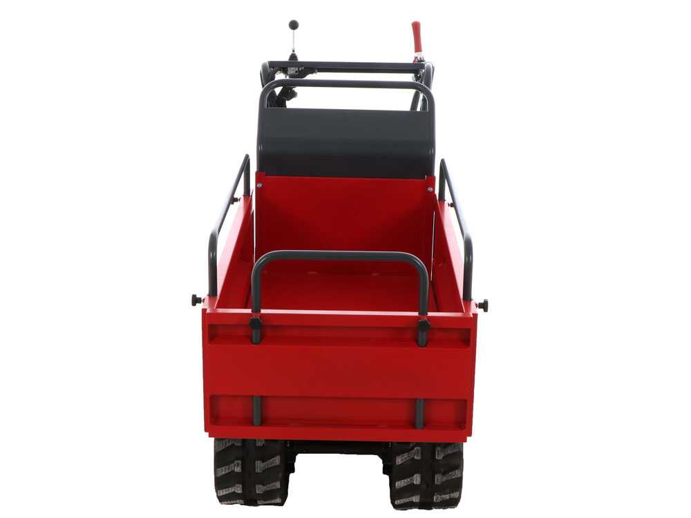 Zu den Eigenschaften dieser Motorschubkarre gehören die Raupen, die Stabilität und Sicherheit beim Einsatz der Maschine auch bei schweren Lasten und Steigungen garantieren, die normale Schubkarren nicht bewältigen können.