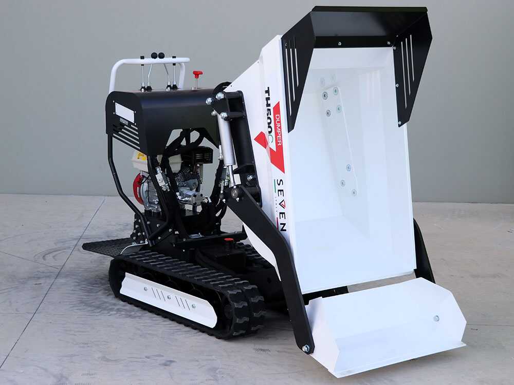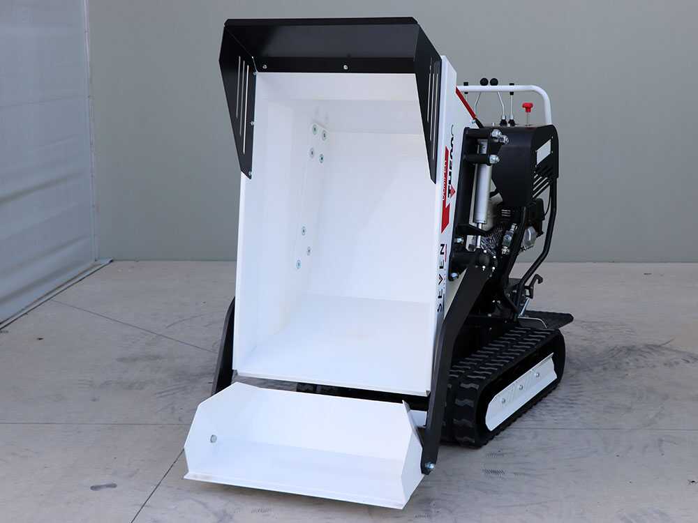 Der Raupentransporter Seven Italy TH500C verfügt über ein Hydrauliksystem zum Anheben der Dumper Mulde mit einer Tragfähigkeit von 500 kg und einer Ladeschaufel Das hydraulische Kippsystem macht das Kippen der Mulde mühelos und praktisch.
