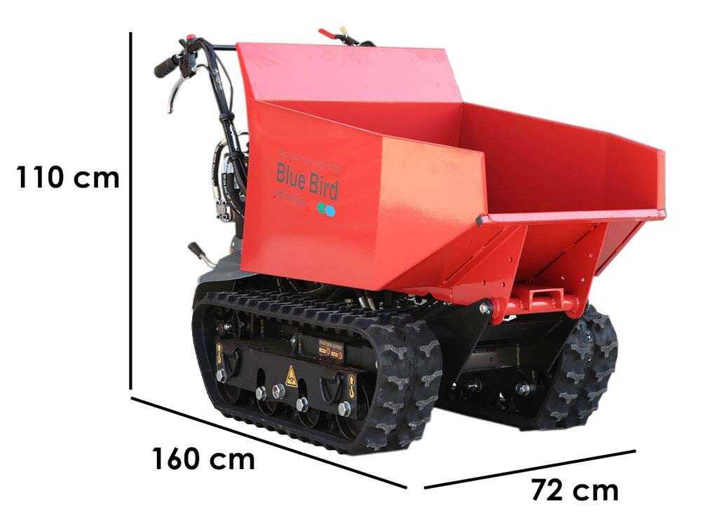 Der robuste Stahlrahmen und das Getriebe mit 3 Vorwärtsgängen und 1 Rückwärtsgang macht den Raupentransporter besonders vielseitig und leistungsfähig.