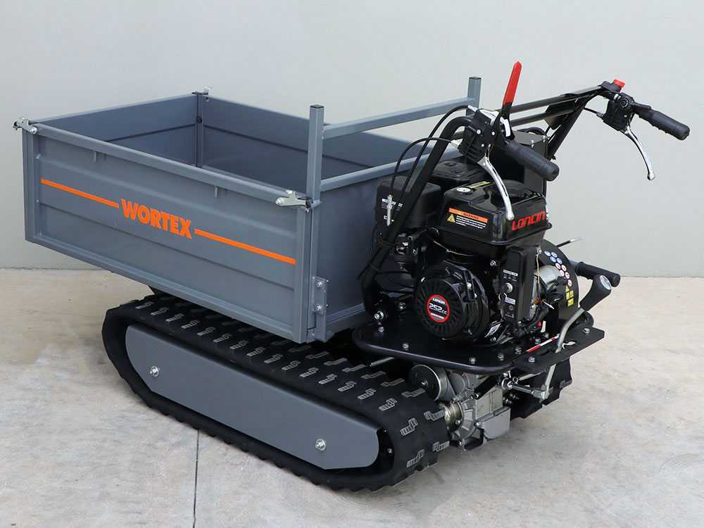 Der Raupentransporter Wortex SFL 500-E ist mit einem Euro 5 Loncin G252 Motor mit Elektrostarter ausgestattet und hat einen Hubraum mit 252 cm³. Nennleistung 8 PS.