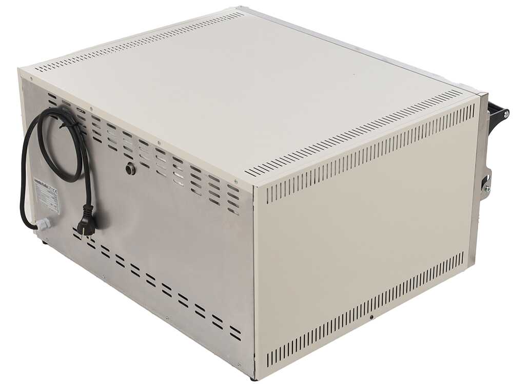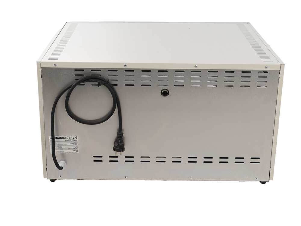 Es handelt sich um einen Einzelkammer-Ofen mit 230V Stromversorgung, geeignet für das gleichzeitige Backen von 2 Pizzen mit 36 cm Durchmesser oder eines Blechs von 60×40 cm.