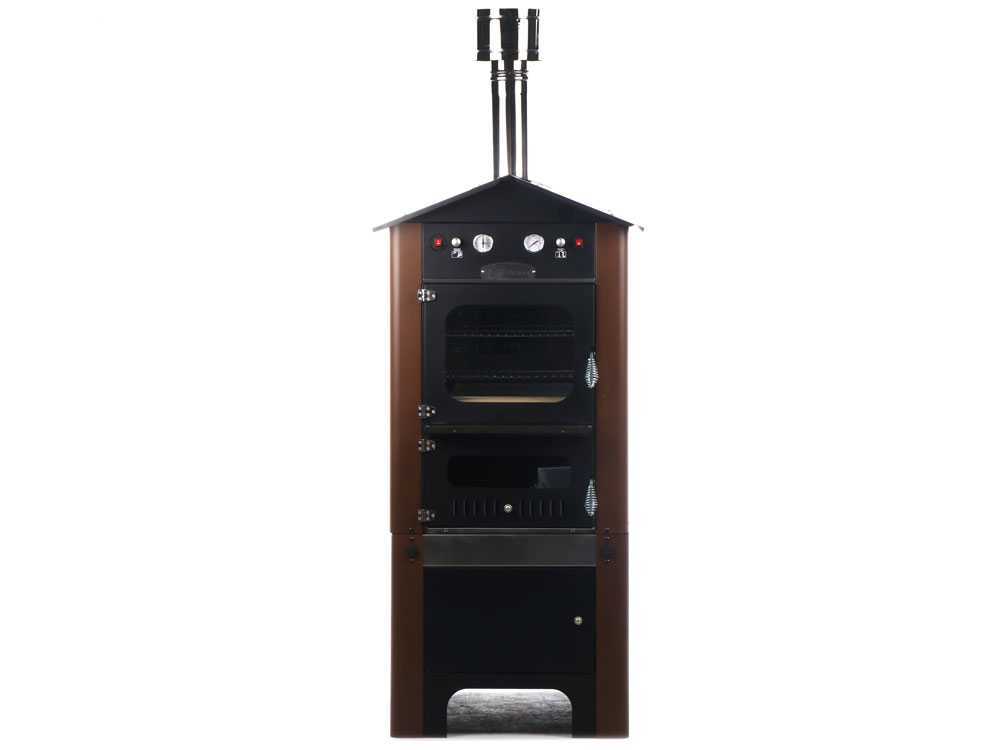 - Der Backraum 48x80x42h, verfügt über drei Grillebenen und einer Schamottplatte zum Backen von perfekten Pizzas.