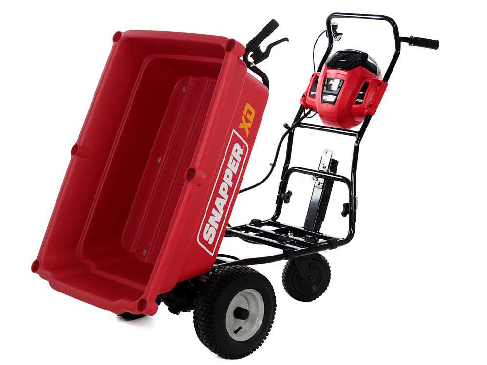 Diese Elektro-Motorschubkarre Snapper ESXDUC82 wird nicht nur für die Pflege des Gartens, sonder auch für den Transport von Brennholz, Gartenabfälle, Schüttgüter usw. verwendet. Bequemheit und Leistung treffen sich in eine einzige Maschine. Kein Transport ist für dieses Gerät zu schwierig. Das hintere Schwenkrad erlaubt die Bewegung auch auf schmalen Wegen und die automatische Parkbremse gewährleistet die Sicherheit des ganzen Systems. Weil die vorderne pneumatische Schwenkräder gewährleisten den maximalen Antrieb auf der Erde.