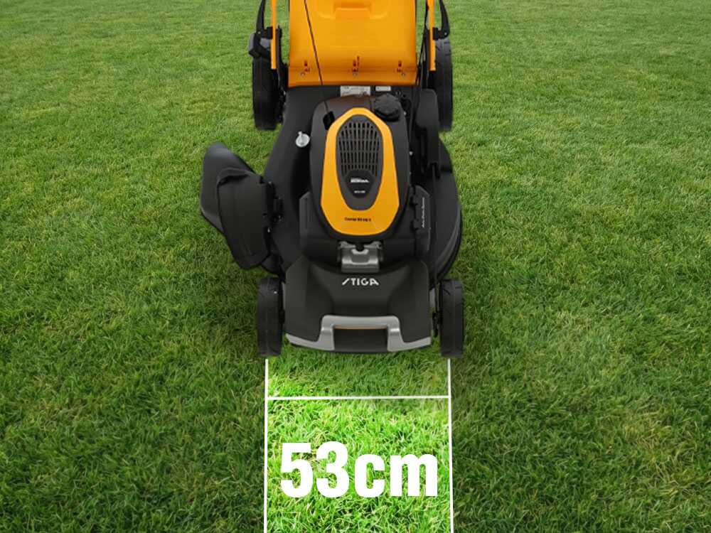 Mit einer Schnittbreite von 53 cm bietet der Mäher hohe Effizienz und Benutzerfreundlichkeit. Dank der zentralen Schnitthöhenverstellung von 25 mm bis 80 mm in 5 Stufen lässt sich die Arbeit optimal an die Bedürfnisse Ihres Rasens anpassen.