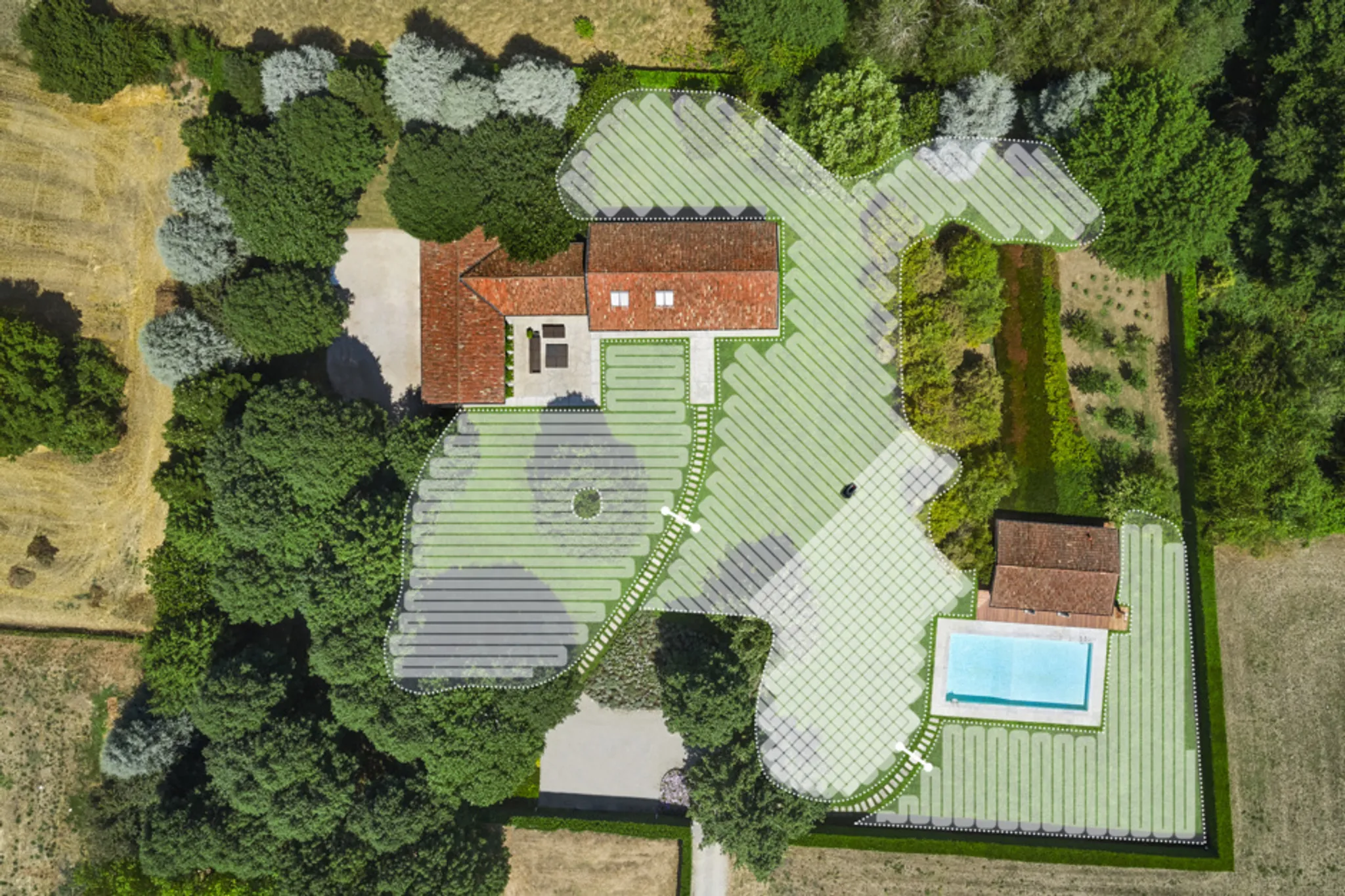 Organisiertes Mähen mit verschiedenen Schnittmustern