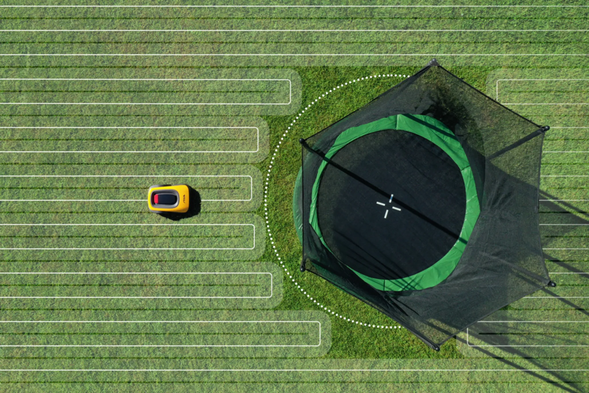 Für die Installation kann der STIGA A 1000 einfach, wie ein ferngesteuertes Auto, an der Rasenkante entlang gesteuert werden. Nach der einmaligen Anlage der Mähbereiche können weitere Änderungen virtuell über die App festgelegt werden. Wenn sich die Gestaltung Ihres Gartens ändern sollte, können Sie einfach die Änderung mit der STIGA.GO-App aktualisieren. Ausgestattet mit unserem langlebigen ePower-Akku kann der STIGA A 1000 einen Rasen von bis zu 1000 m² zuverlässig in nur zwei Mähsitzungen pro Tag pflegen. Die nächste Sitzung beginnt immer dort, wo die vorherige aufgehört hat, damit der Roboter die gesamte Rasenfläche pflegen kann, indem er jeden Tag die verschiedenen Zonen schneidet. Sie können bis zu 7 verschiedene Mähzonen in Ihrem Garten einrichten. Um die Gesundheit des Rasens zu erhalten, empfehlen wir, nur 2 Mähsitzungen (≅ 2 Akkuladungen) pro Tag zu planen; die Planung ist jedoch vollständig flexibel.