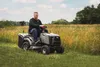 ausgestatteter Rasenmähtraktor. Seine große Schnittbreite von 102 cm macht ihn