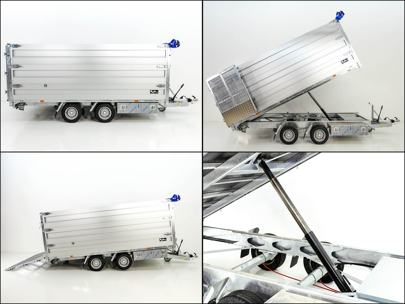 • Maschinen- und Kippanhänger mit ca. 55° Kippwinkel zum Abkippen und ca. 10° Auffahrwinkel