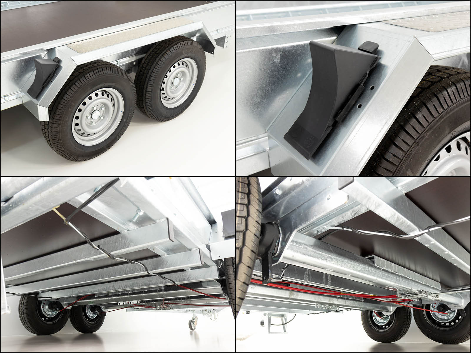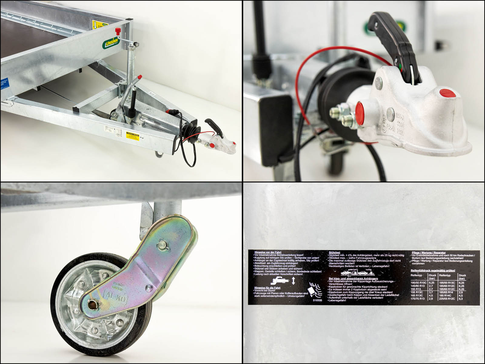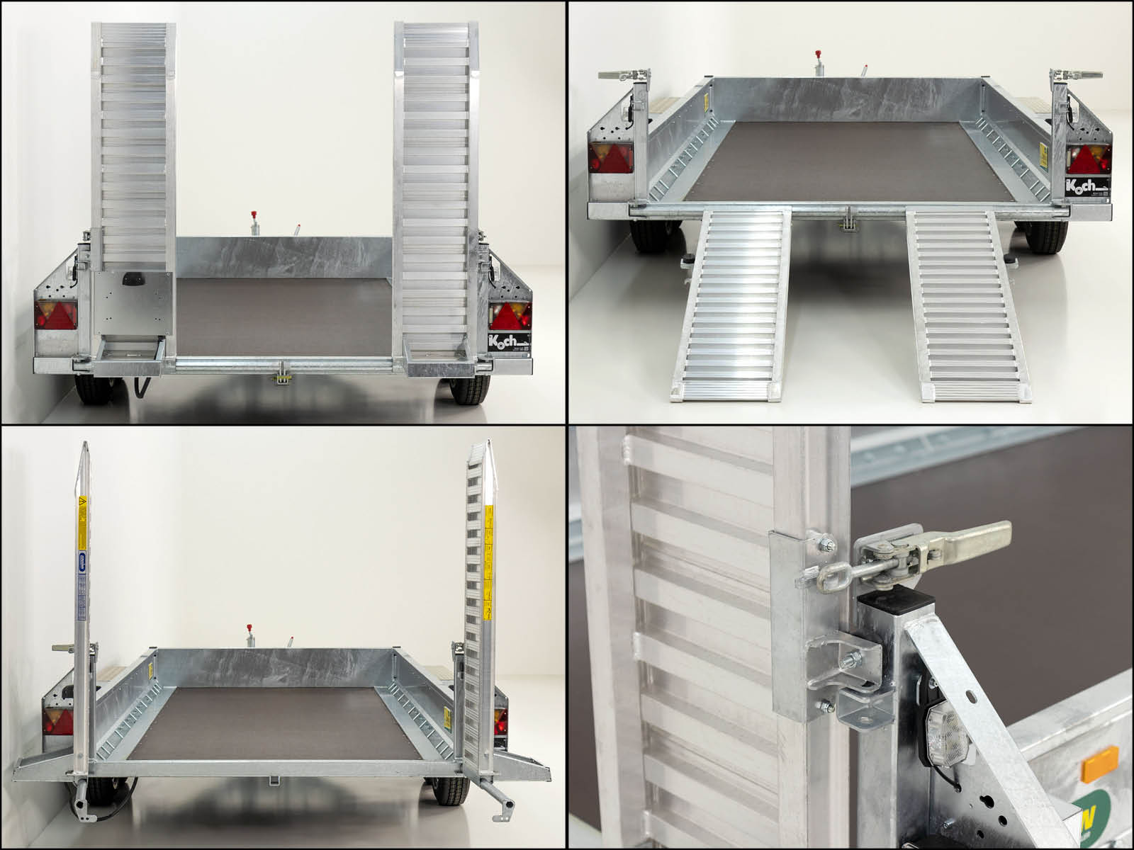BesonderheitenVerschweißter Gitterrohrrahmen, komplett Tauchbad-Feuerverzinkt; Rampen verschieb- und schwenkbar mit Zwangsbelüftung; 10 Paar Ladungssicherungspunkte, belastbar pro Zurrpunkt 2000 kg; Stabile begehbare Kotflügel mit Aluriffelblech