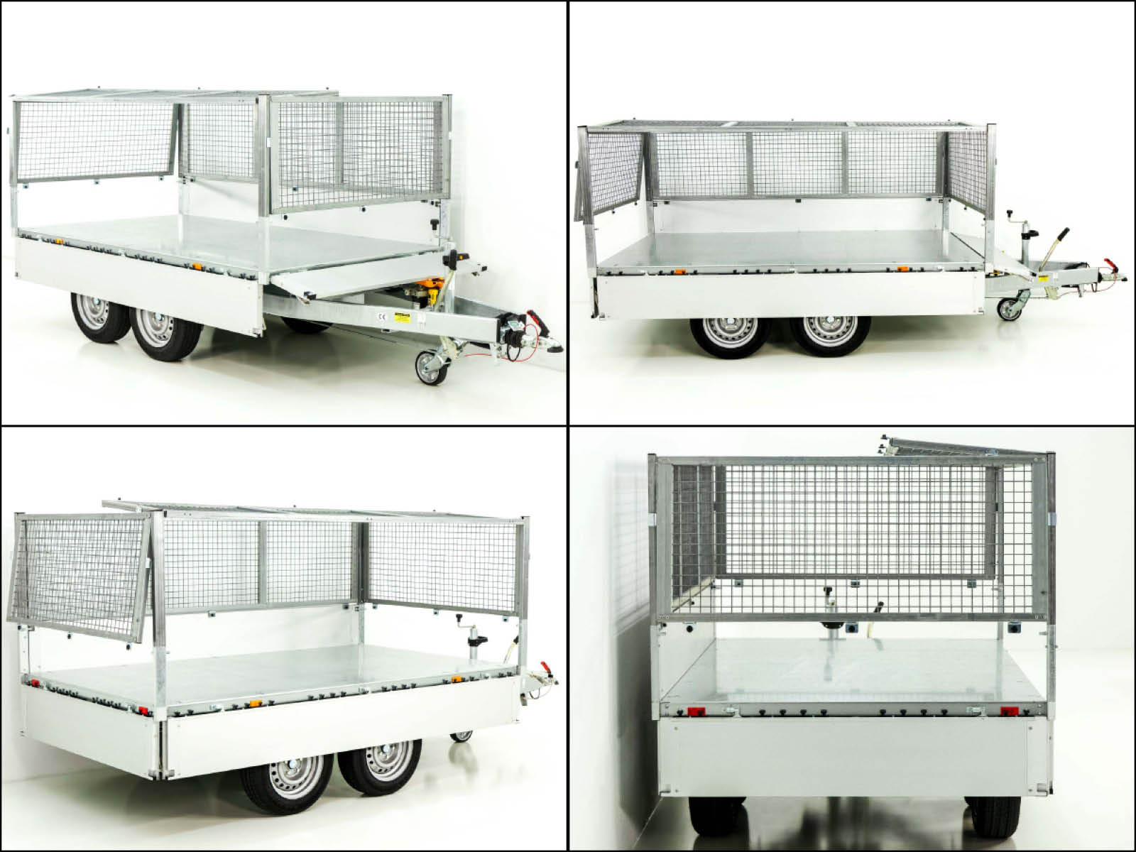 Ein robuster und gut ausgestatteter Heckkipper von Unsinn, geeignet für mittlere bis schwere Lasten mit einer Nutzlast von bis zu 2.040 kg. Ausgestattet mit einer elektrischen Pumpe und Notpumpe für zuverlässigen Betrieb, ist dieser Kipper ideal für vielseitige Anwendungen.