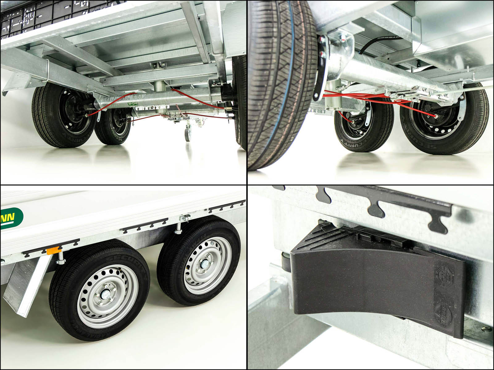 | Fahrwerk | 2 Achsen, Gummifederachse (Alko) |