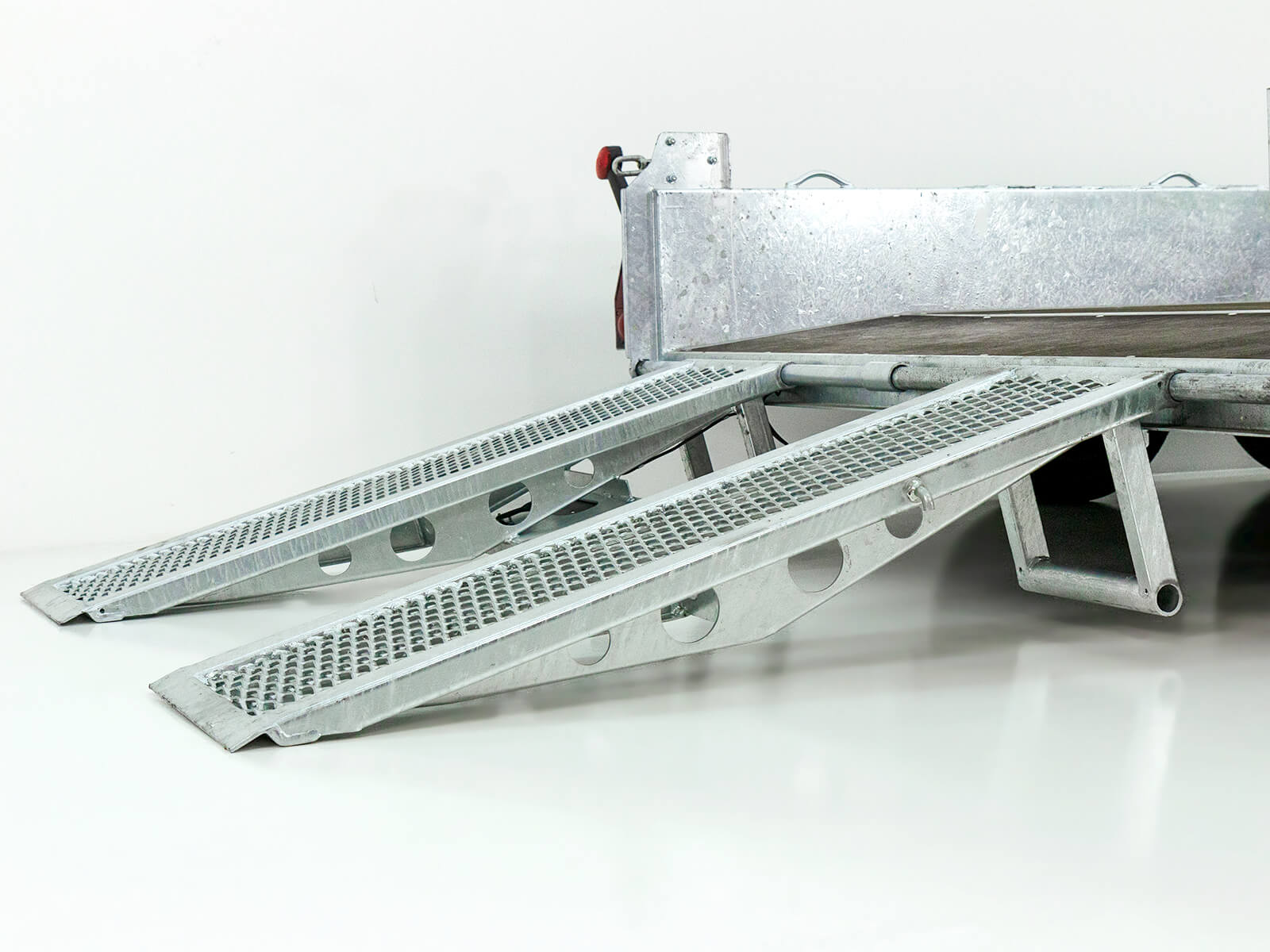 Der Variant Baumaschinenanhänger Maxi Load bietet eine stabile Konstruktion mit einem verzinkten Gitterrohrrahmen und robusten Stahlbordwänden. Die begehbaren Aluriffelblech-Kotflügel und die integrierte Trittstufe sorgen für eine hohe Nutzerfreundlichkeit. Der Anhänger ist mit einem niedrigen Auffahrwinkel ausgestattet, was das Beladen erleichtert. Durch die verschiebbaren Einzelrampen ist er flexibel einsetzbar.