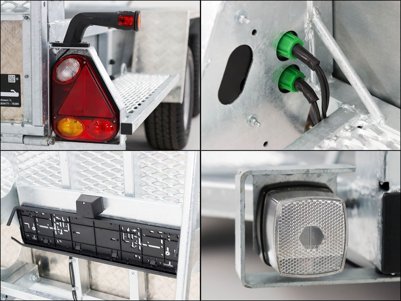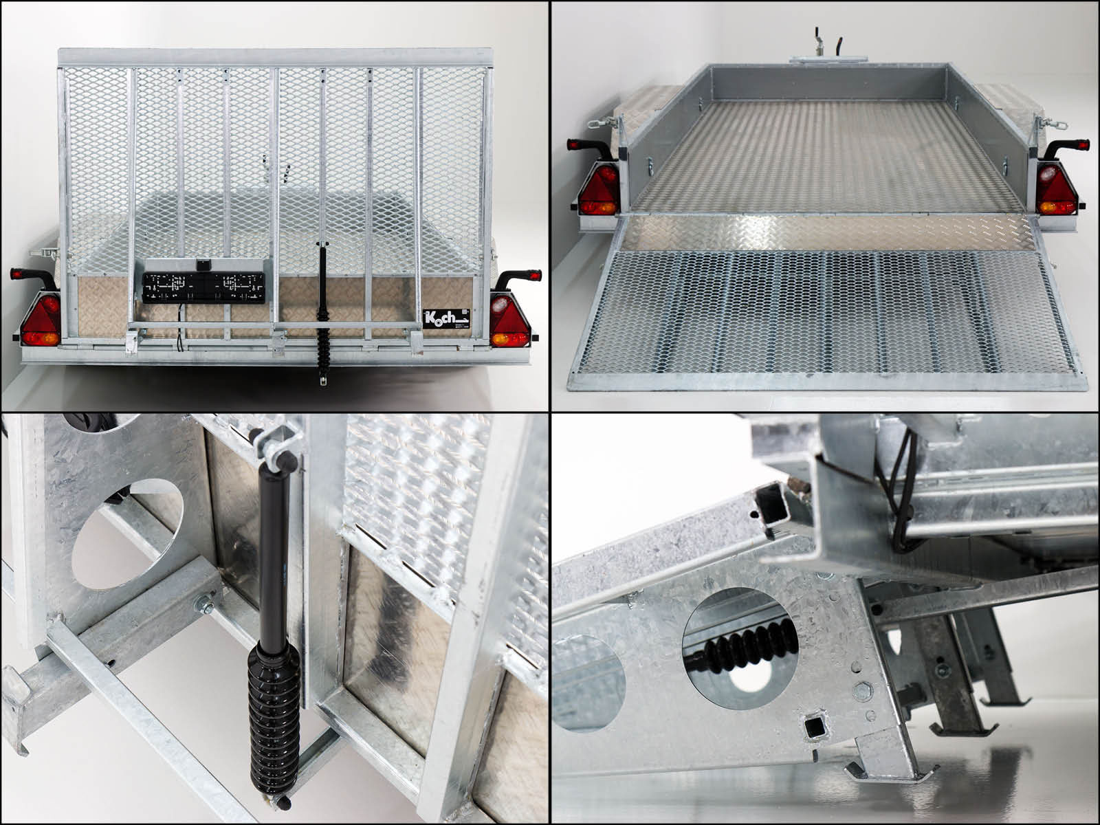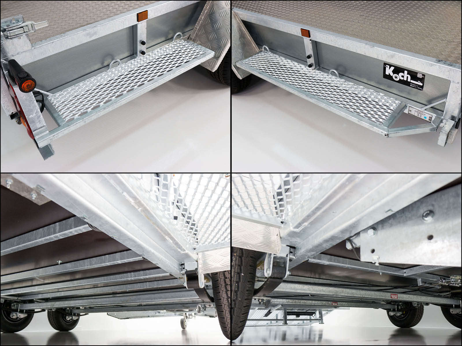 BesonderheitenGitterrohrrahmen, verzinkt; Stahlbordwände, verzinkt; Aluriffelblech Kotflügel, begehbar; Trittstufen seitlich integriert; Baggerlöffelablage; 10 Verzurrösen außen integriert, 8 Verzurrösen seitlich; Fahrzeugpapiere inklusive