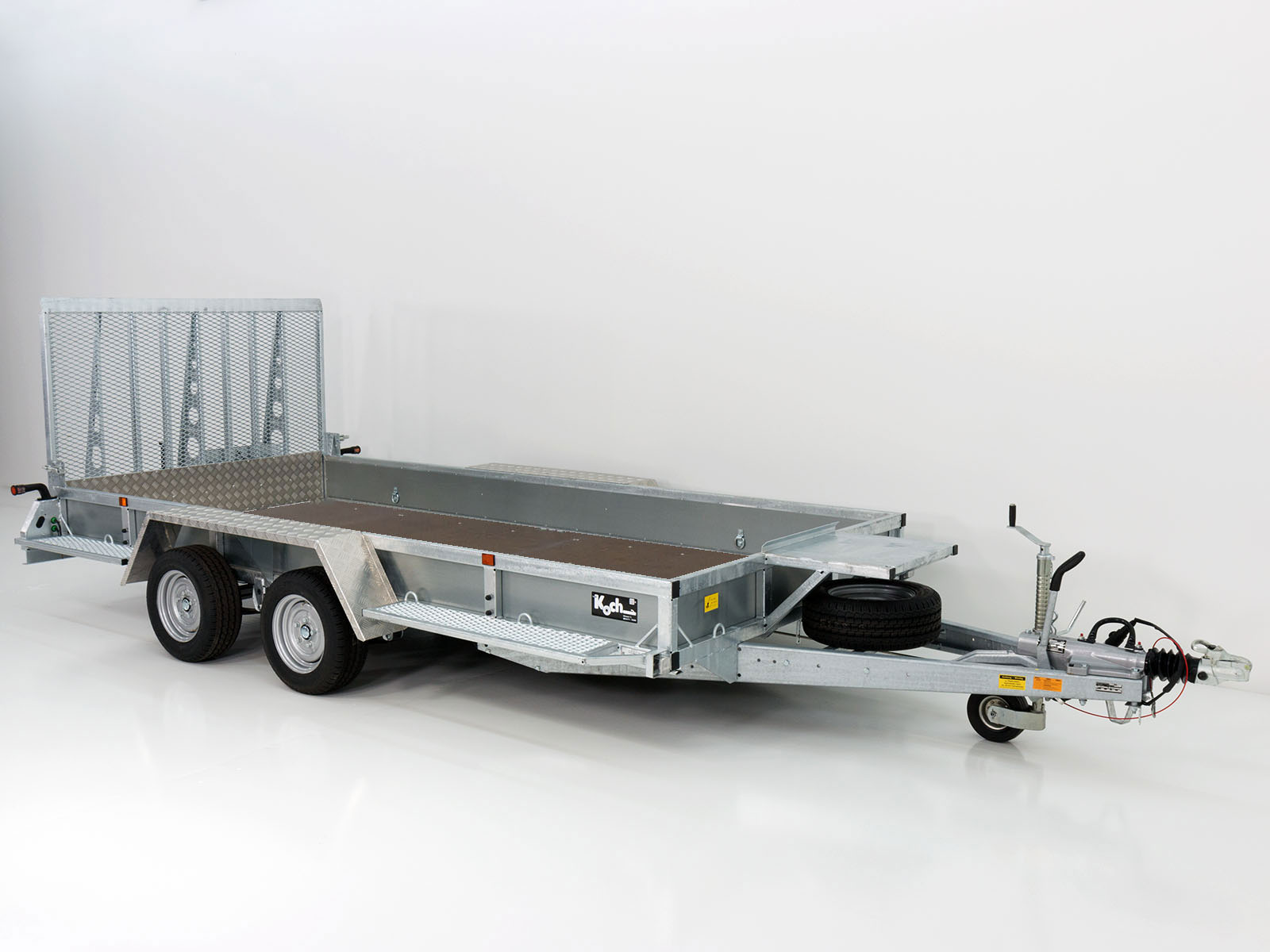 | Besonderheiten | Gitterrohrrahmen, verzinkt; Stahlbordwände, verzinkt; Aluriffelblech Kotflügel, begehbar; Trittstufen seitlich integriert; Baggerlöffelablage; Auffahrrampe, verschiebbar; 10 Verzurrösen außen integriert, 8 Verzurrösen seitlich; Fahrzeugpapiere inklusive |