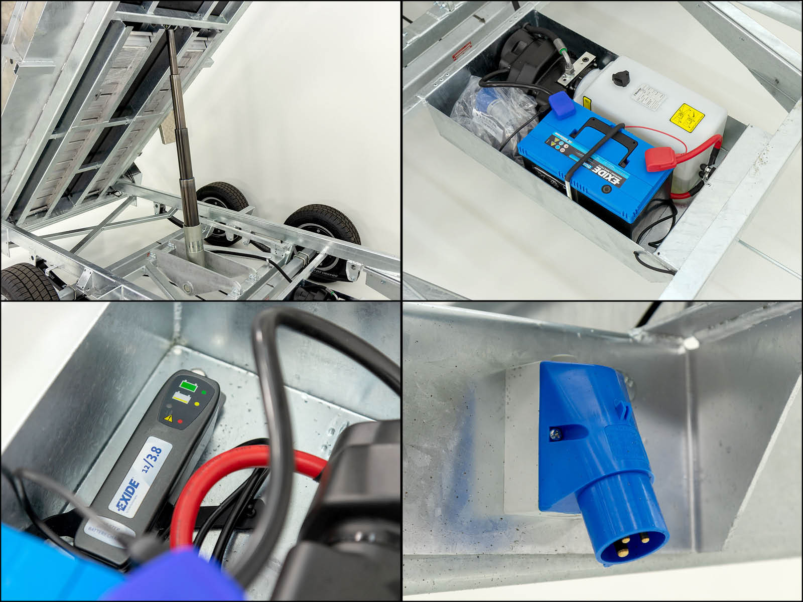 | Kippsystem | Rückwärtskipper mit E-Hydraulikpumpe |