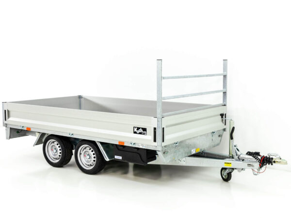 Der Variant Hochlader Anhänger P3 3018 Comfort ist ein flexibler Anhänger, der mit einem H-Gestell und einer Staubox ausgestattet ist. Mit einem Lademaß von 175×315 cm und einer Nutzlast von 2490 kg bietet er ausreichend Platz für mittelschwere Transporte. Der Anhänger hat eine Multiplex-Holzbodenplatte, die strapazierfähig und langlebig ist, sowie abnehmbare Aluminium-Bordwände und 6 Zurrbügel zur sicheren Befestigung der Ladung. Der Rampenschacht ermöglicht das Nachrüsten von Rampen, was den Anhänger besonders für den Transport von Fahrzeugen oder anderen großen Gütern nützlich macht. Optional ist eine 100 km/h Zulassung erhältlich.
