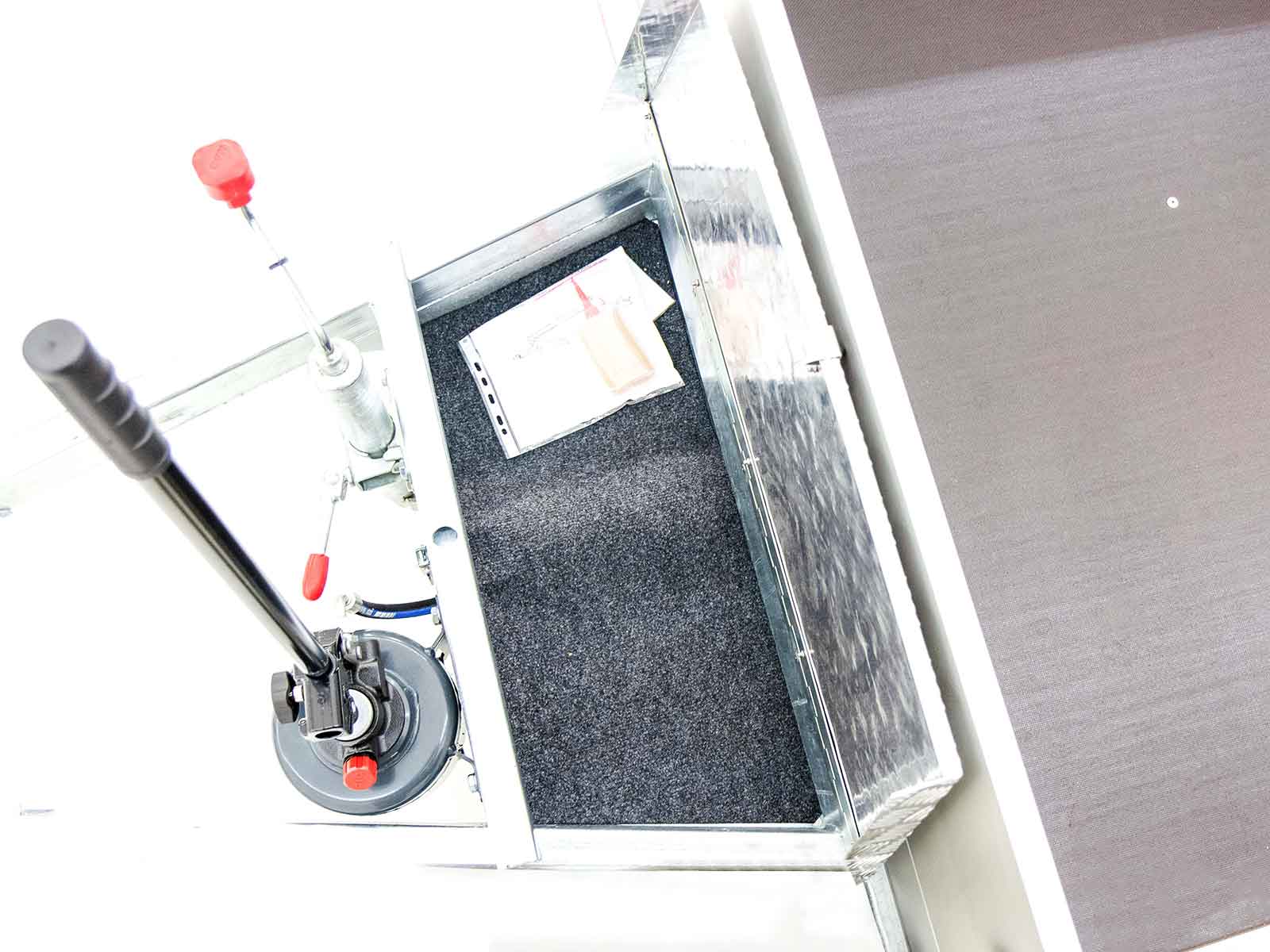 • Ladefläche hydraulisch absenkbar (Handpumpe)
