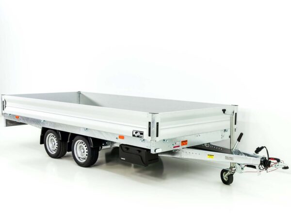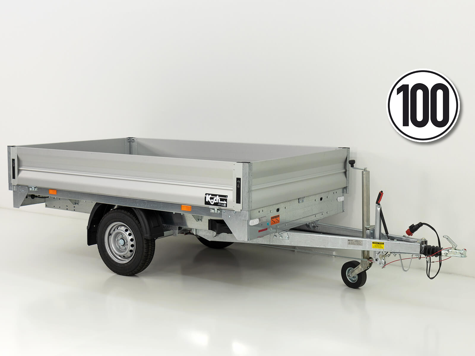 Der Vezeko Hochlader Anhänger DX13.26 überzeugt mit seiner stabilen Multiplex-Holzbodenplatte und einer Aluminium-Bordwand von 350 mm Höhe. Er bietet versenkte Bordwandverschlüsse und gummierte Zurrbügel (4 Stück) für eine sichere Ladungssicherung (500 daN). Die Gummifederachse sorgt für ein wartungsfreies Fahrwerk, kombiniert mit einer Auflaufbremse, einem Automatik-Stützrad und einer Rückfahrautomatik. Der Anhänger ist ebenfalls für eine 100 km/h Zulassung vorbereitet und kann mit einer Hochplane ausgestattet werden (als Zubehör erhältlich). Ideal für den gewerblichen Einsatz oder für den Transport von größeren Lasten.