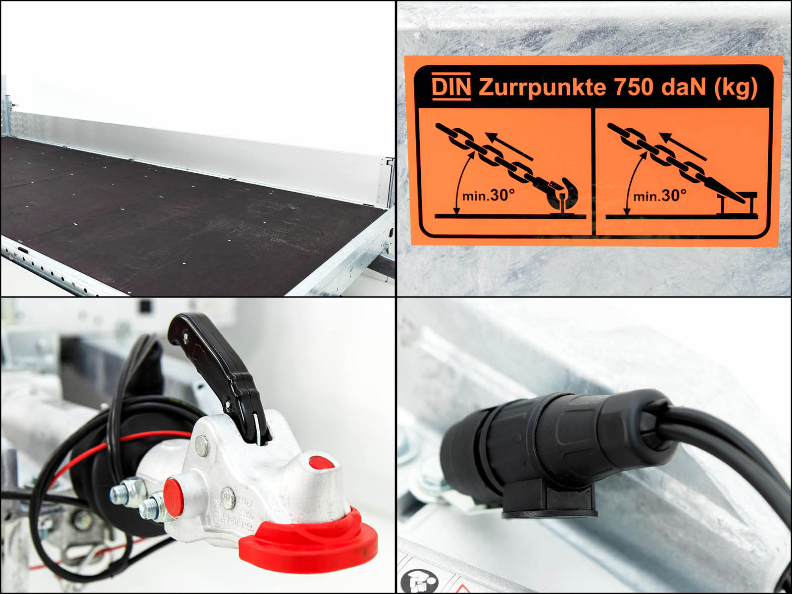 | Zurrösen | 8 Stück im Bodenrahmenprofil (500 daN) |