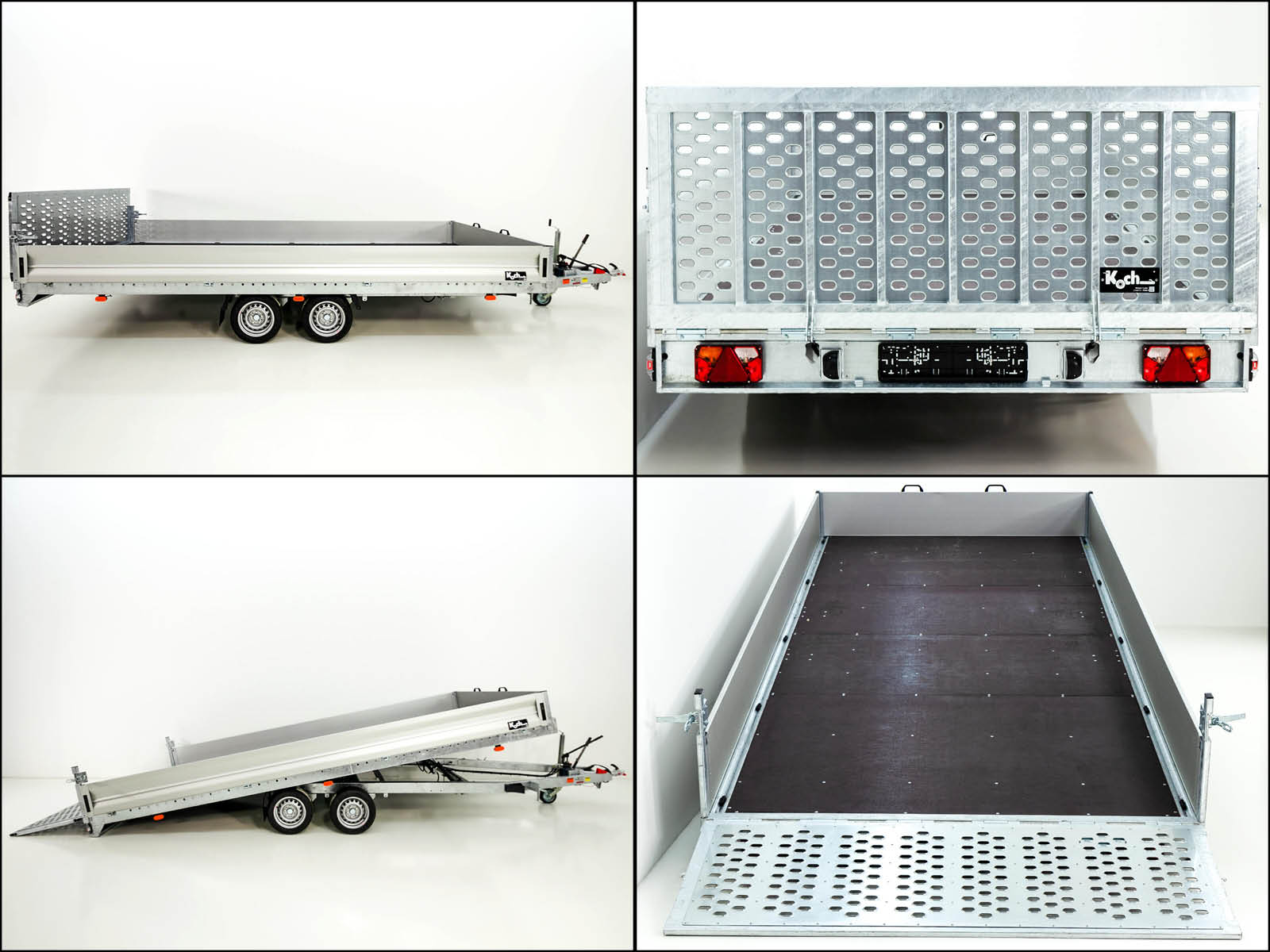 • Bordwände: Die Bordwände aus eloxiertem Aluminium sind klapp- und abnehmbar, wodurch der Anhänger flexibler für verschiedene Anwendungen wird.