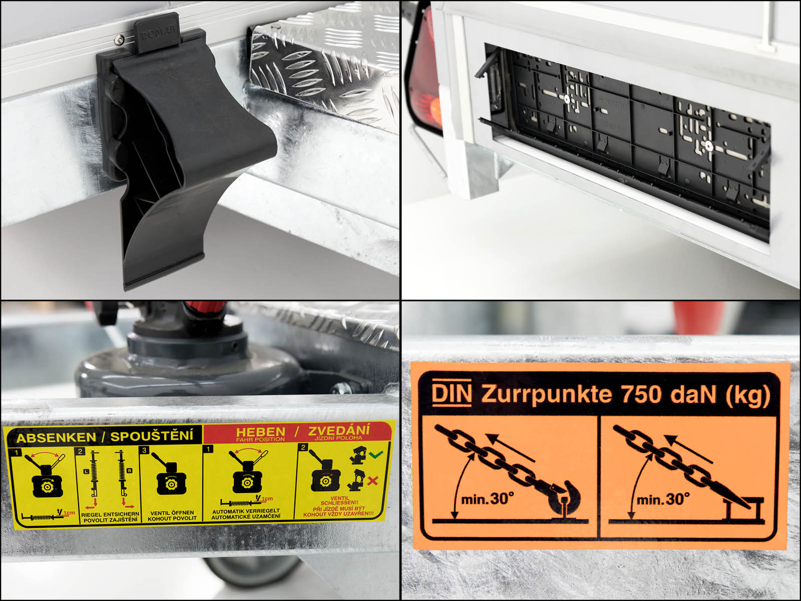 • Ladefläche hydraulisch absenkbar (Handpumpe)