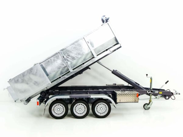 Der Vezeko KONOS 35-3 Abroll-Muldenkipper 3,5t mit einer 57 cm hohen Kippmulde ist die perfekte Wahl für den professionellen Transport von Schüttgut und Abfällen. Ausgestattet mit einem leistungsstarken Hakengerät und einer hydraulischen Elektropumpe, ermöglicht er eine effiziente Entladung über Funkfernbedienung.